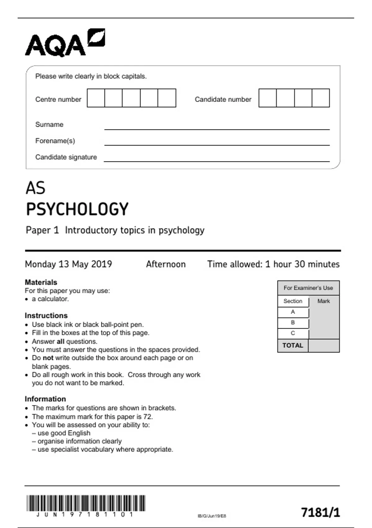 - Assessment & Qualifications Alliance AQA
