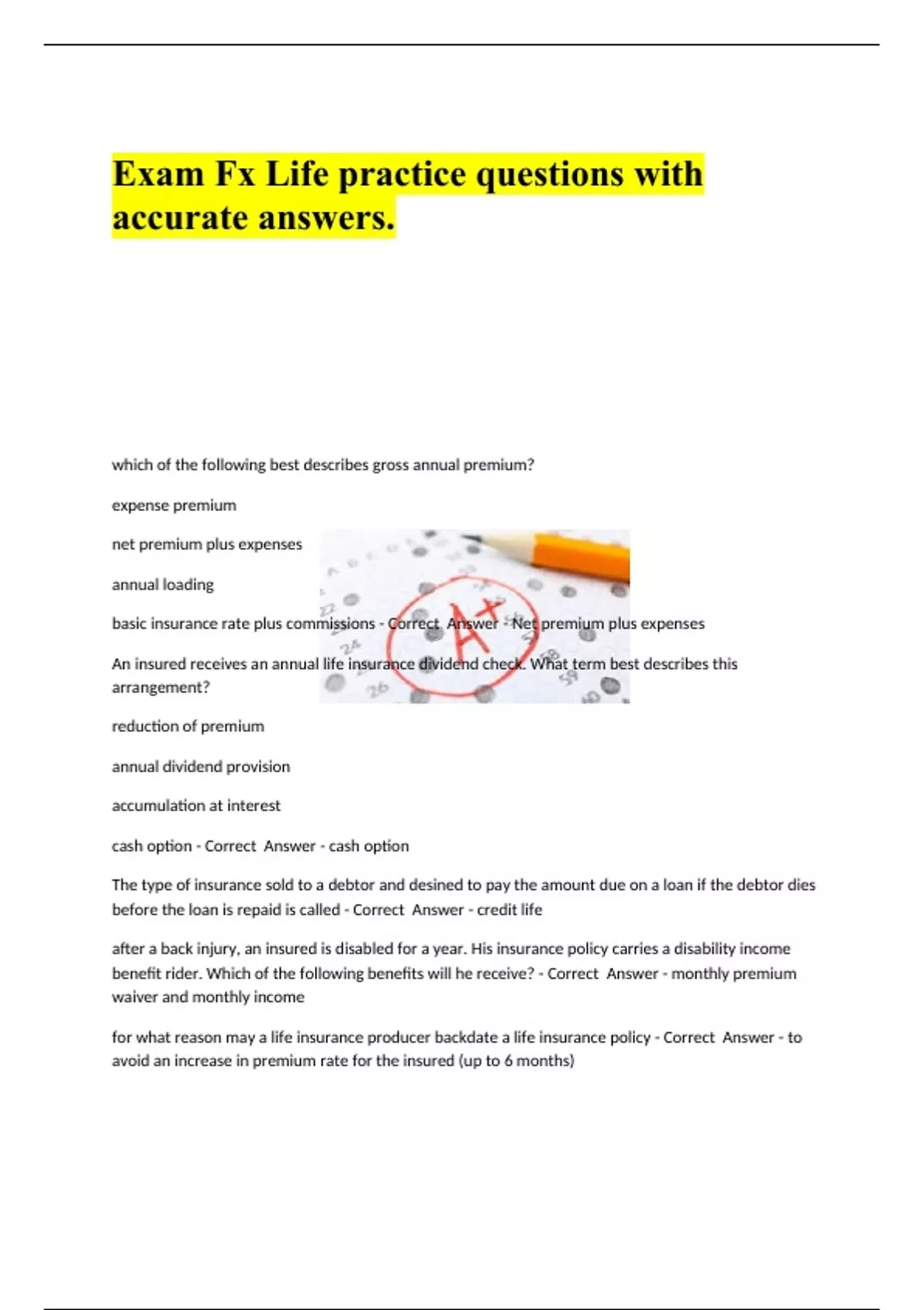 exam fx life practice questions with accurate answ