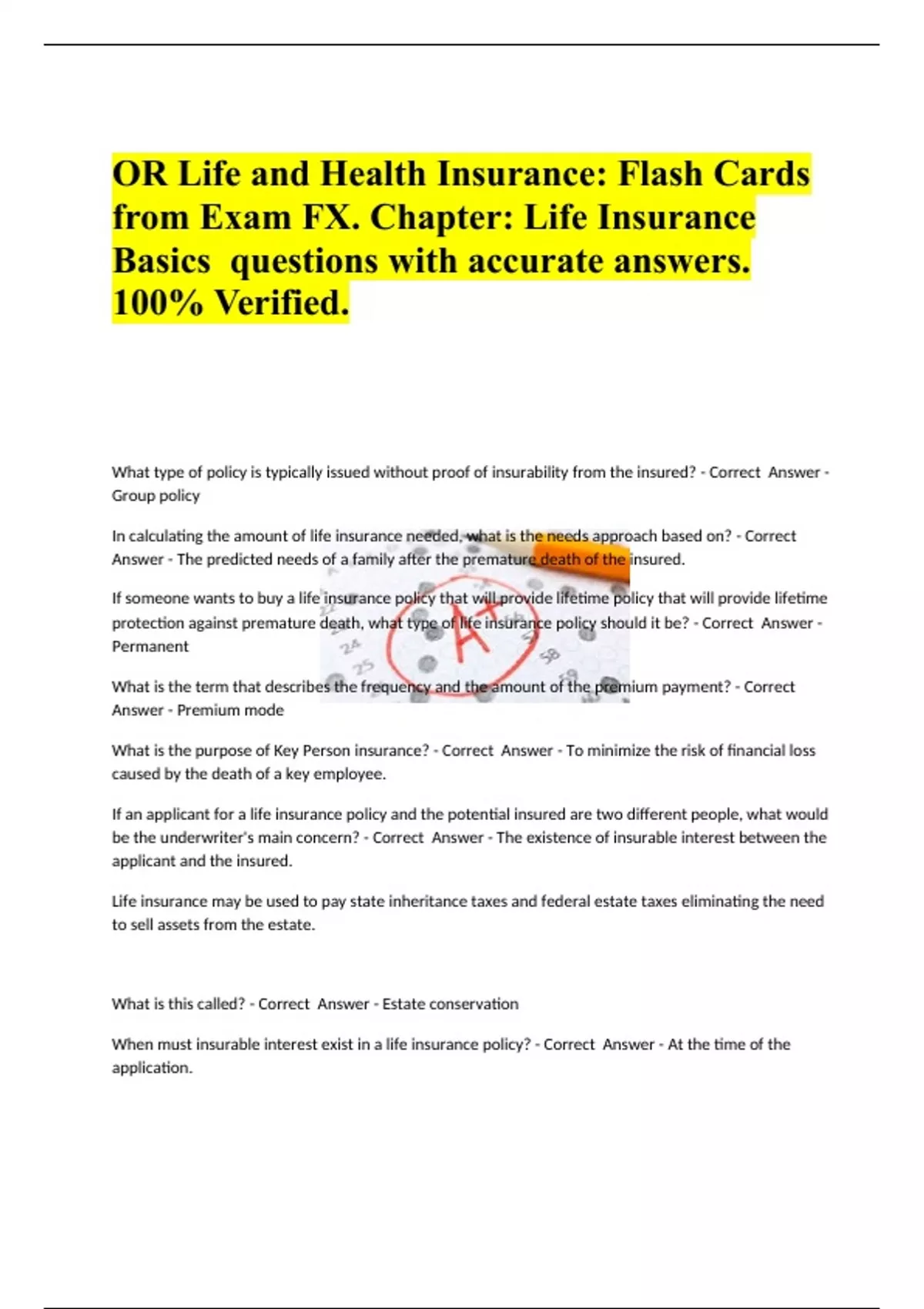 OR Life and Health Insurance Flash Cards from Exam FX. Chapter Life Insurance Basics questions with answers