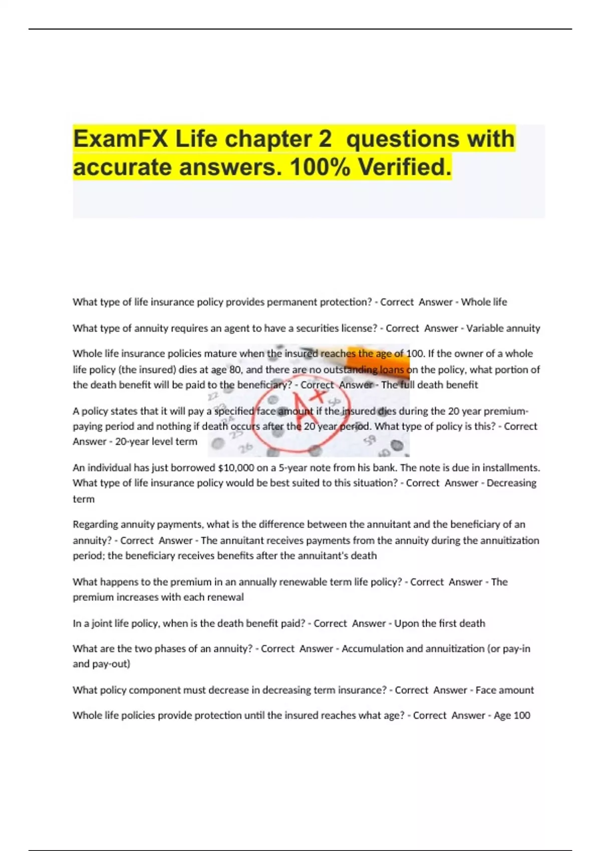 ExamFX Life chapter 2 questions with accurate answers. 100% Verified.