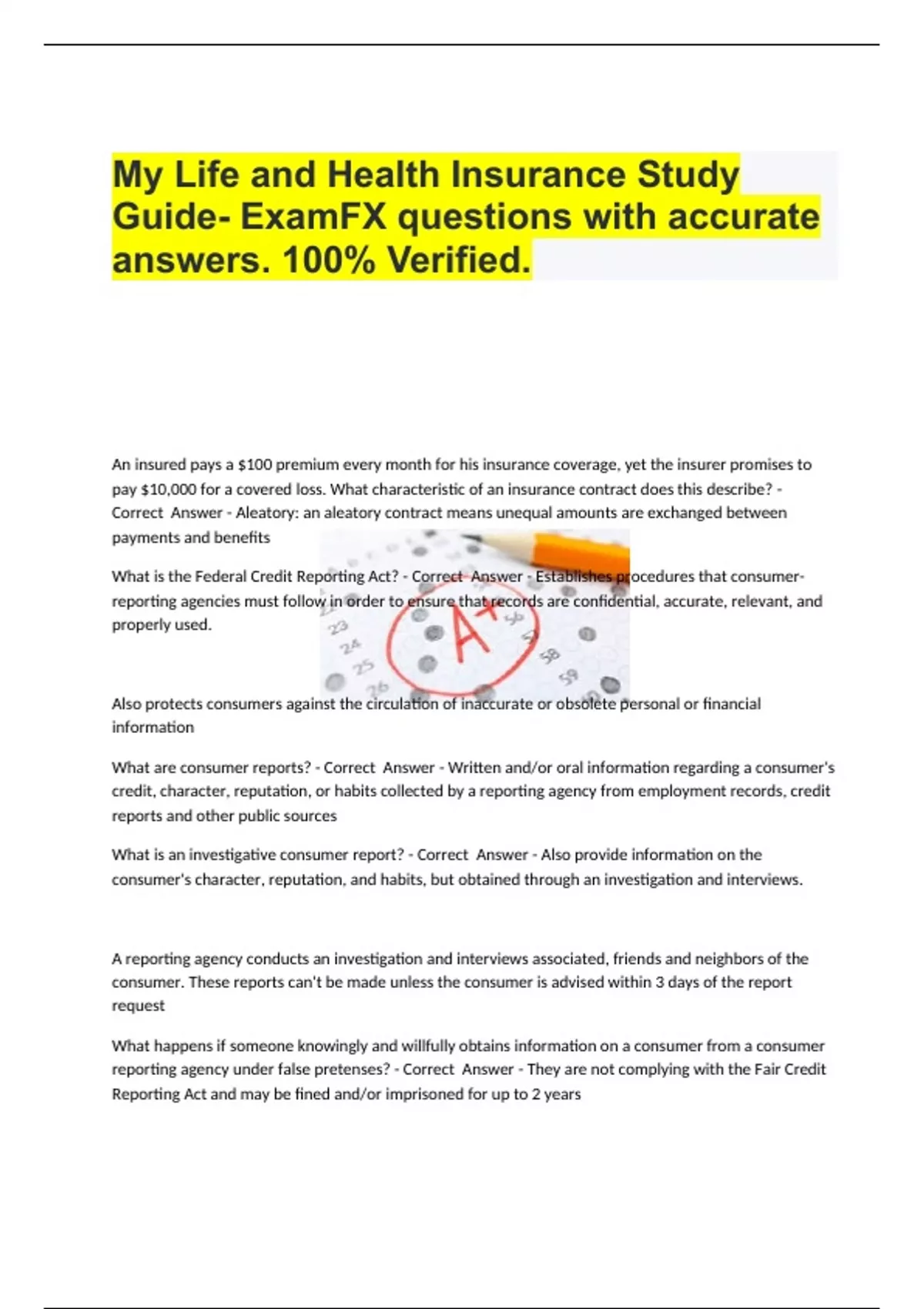 My Life and Health Insurance Study Guide- ExamFX questions with accurate answers. 100% Verified.