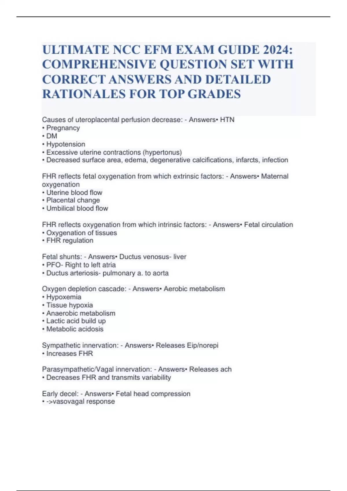 ULTIMATE NCC EFM EXAM GUIDE 2024: COMPREHENSIVE QUESTION SET WITH CORRECT ANSWERS AND DETAILED RATIONALES FOR TOP GRADES