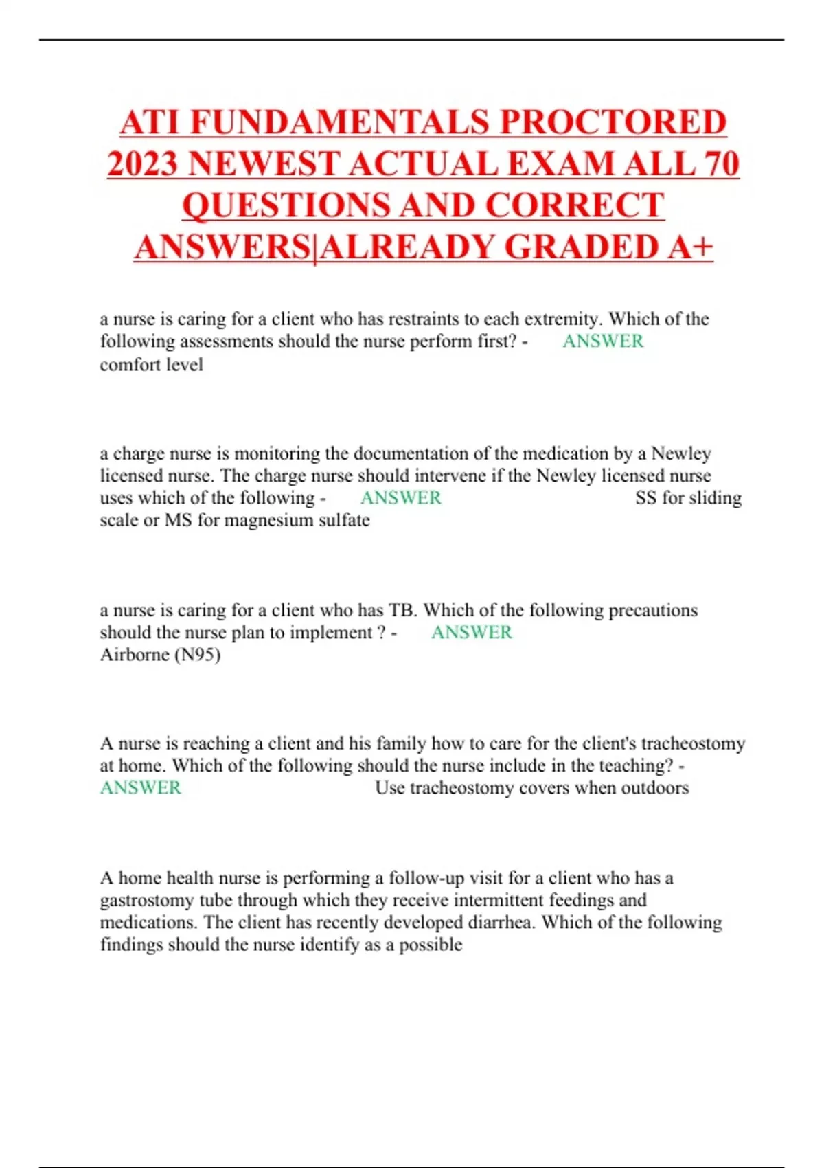 ATI FUNDAMENTALS PROCTORED 2023 NEWEST ACTUAL EXAM ALL 70 QUESTIONS AND CORRECT ANSWERS|ALREADY GRADED A+