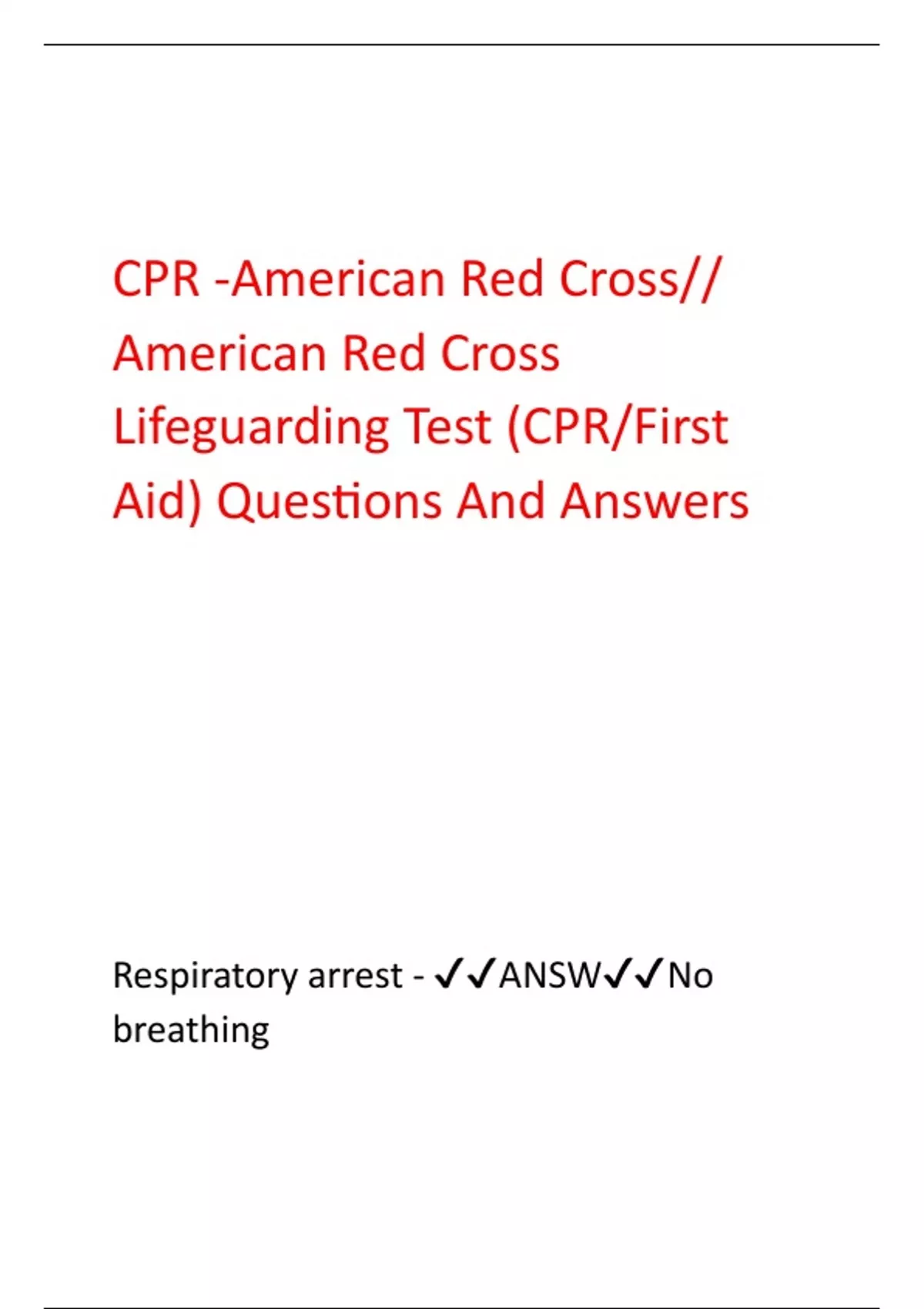 CPR -American Red Cross// American Red Cross Lifeguarding Test (CPR/First Aid) Questions And Answers