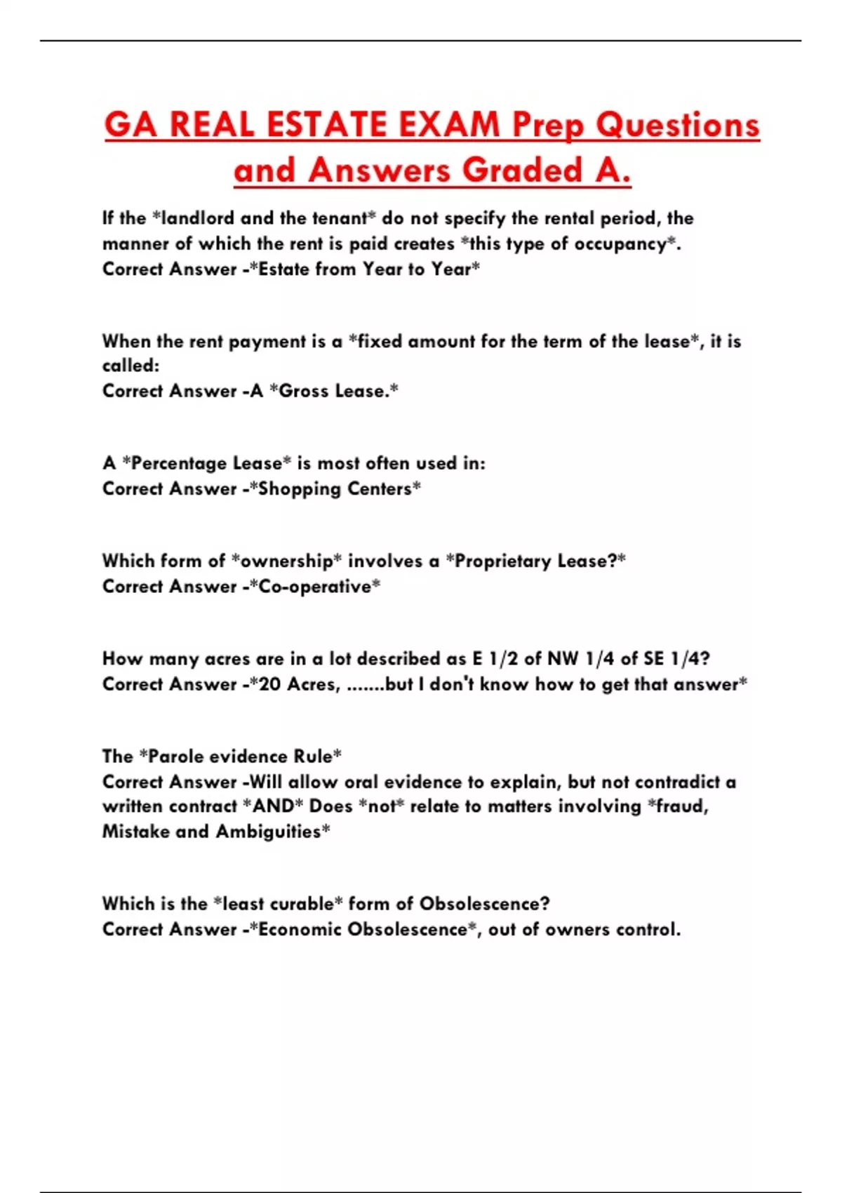 GA REAL ESTATE EXAM Prep Questions and Answers Graded A.