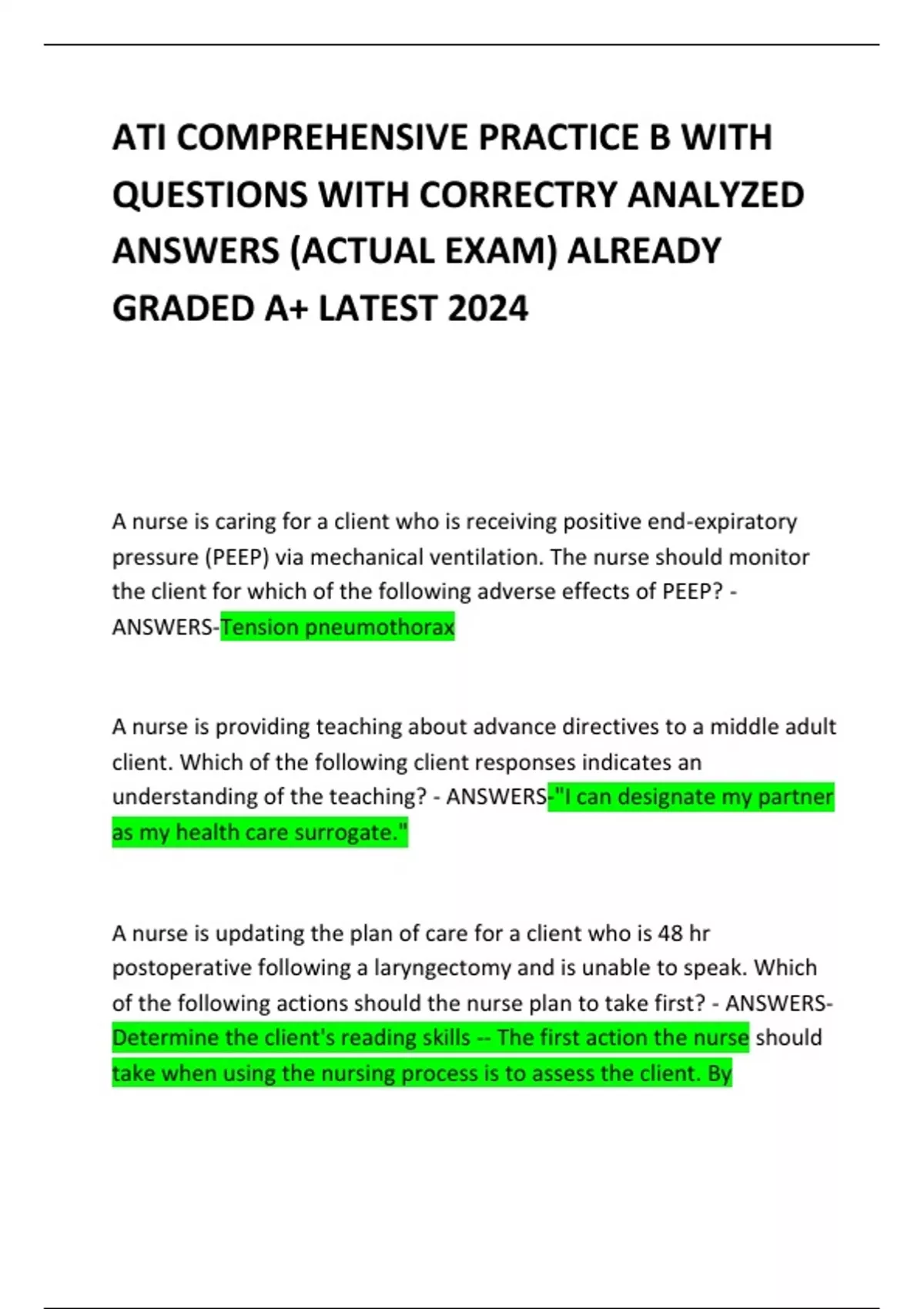 ATI COMPREHENSIVE PRACTICE B WITH QUESTIONS WITH CORRECTRY ANALYZED ANSWERS (ACTUAL EXAM) ALREADY GRADED A+ LATEST 2024