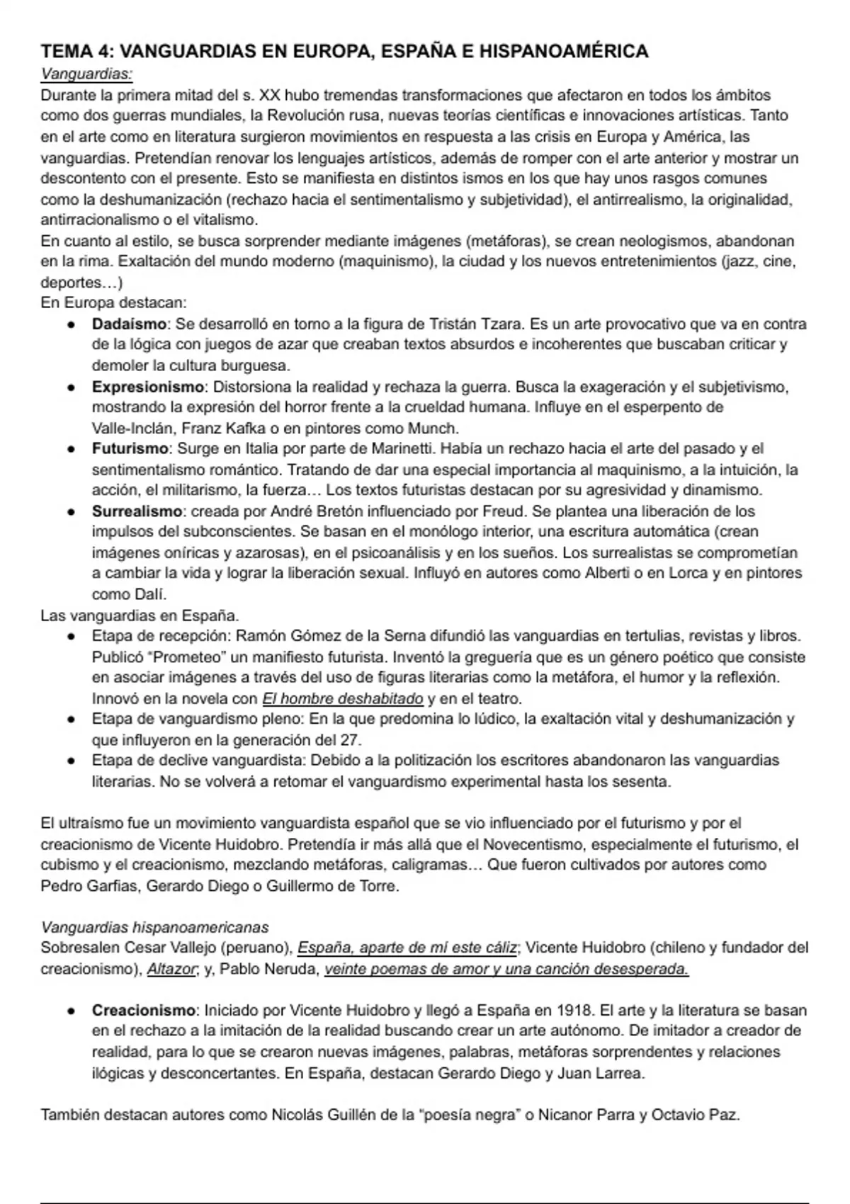 Tema 4: Vanguardias en España e Hispanoamérica - 2 Bachillerato