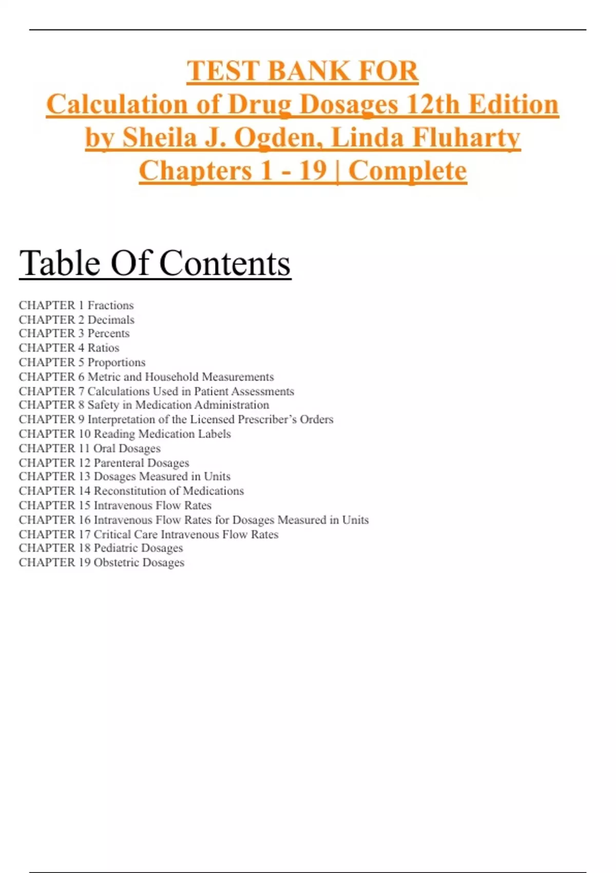 Calculation Of Drug Dosages 12th Edition Ogden Test