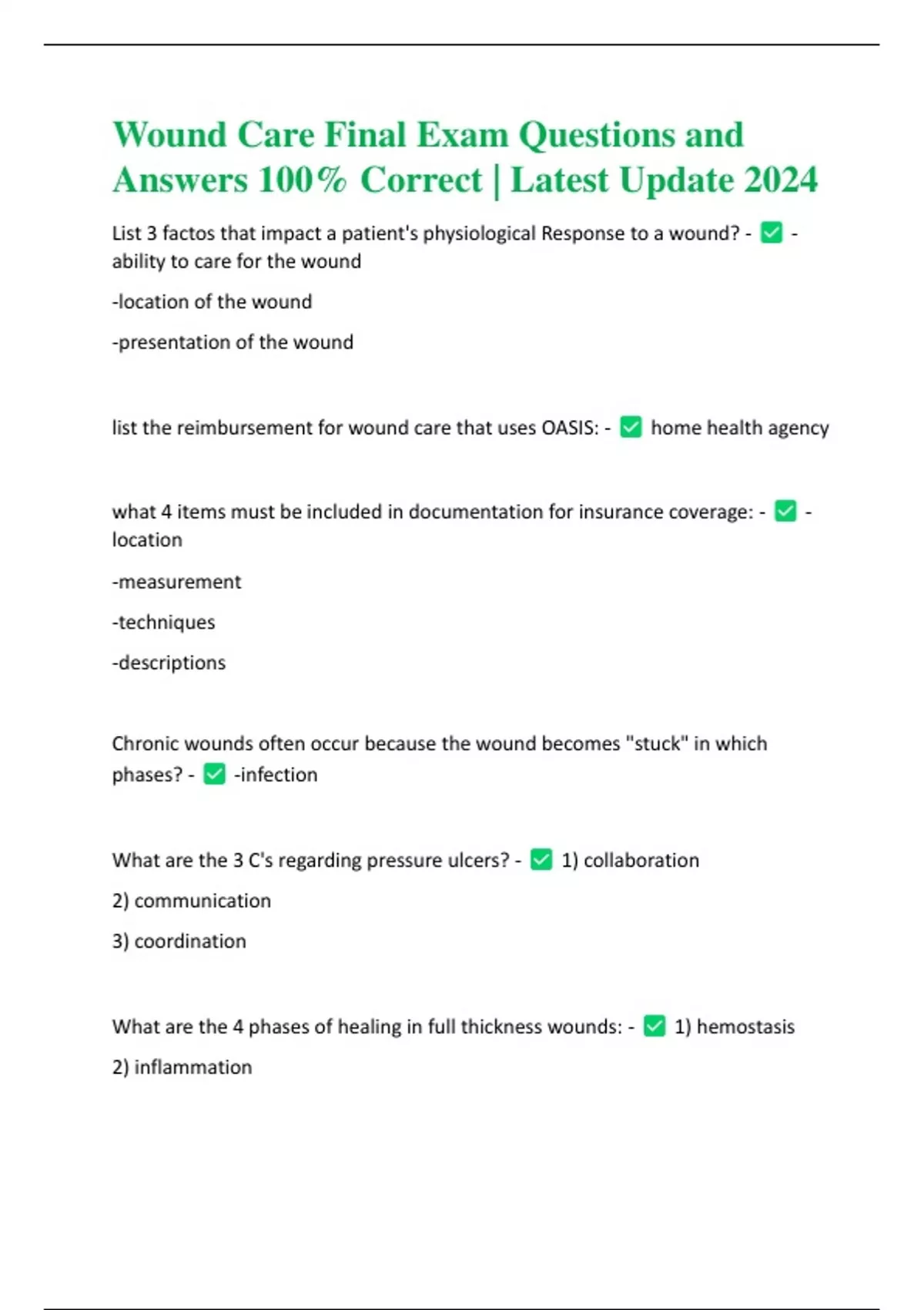 WOUND CARE BUNDLED ACTUAL Questions and Answers with Complete Solutions 100% Correct | Latest Update 2024