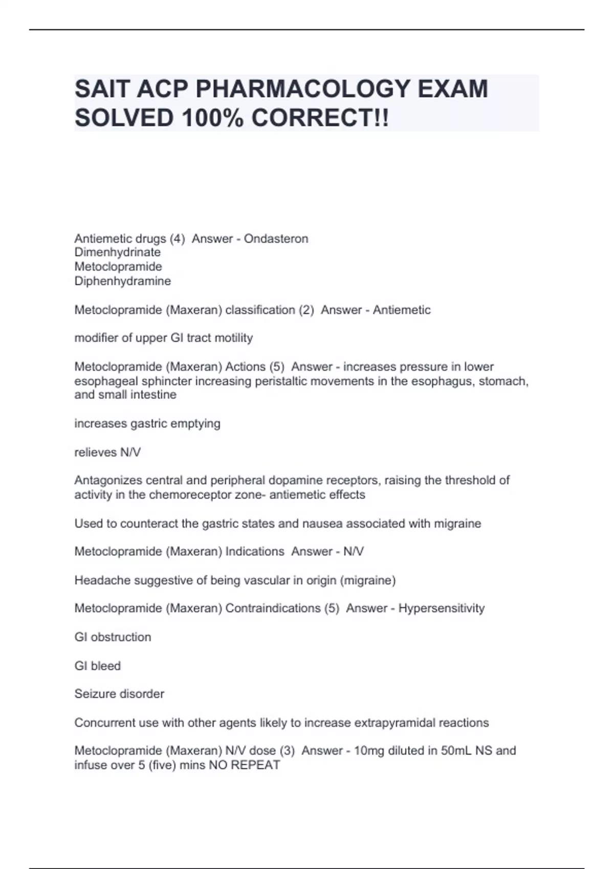SAIT ACP PHARMACOLOGY EXAM SOLVED 100% CORRECT!!