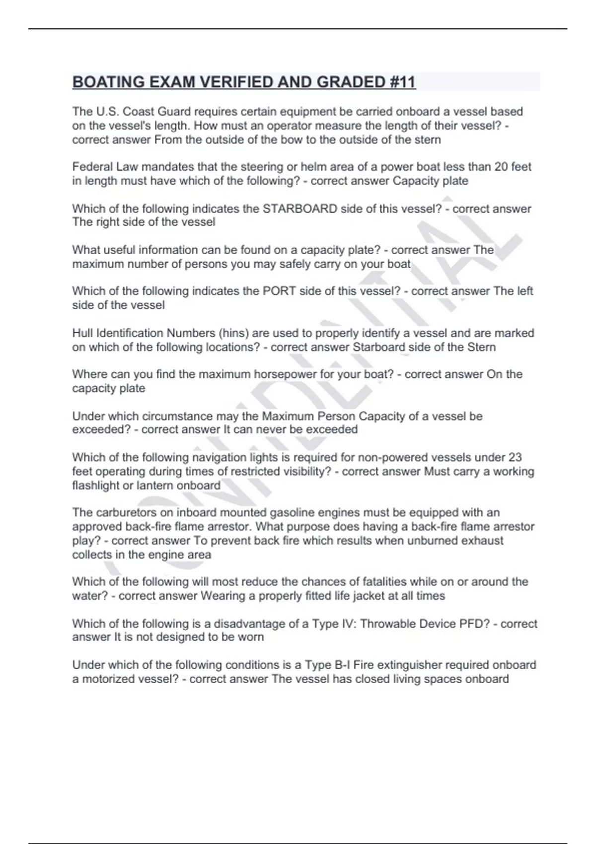 water? - correct answer Wearing a properly fitted life jacket at all times