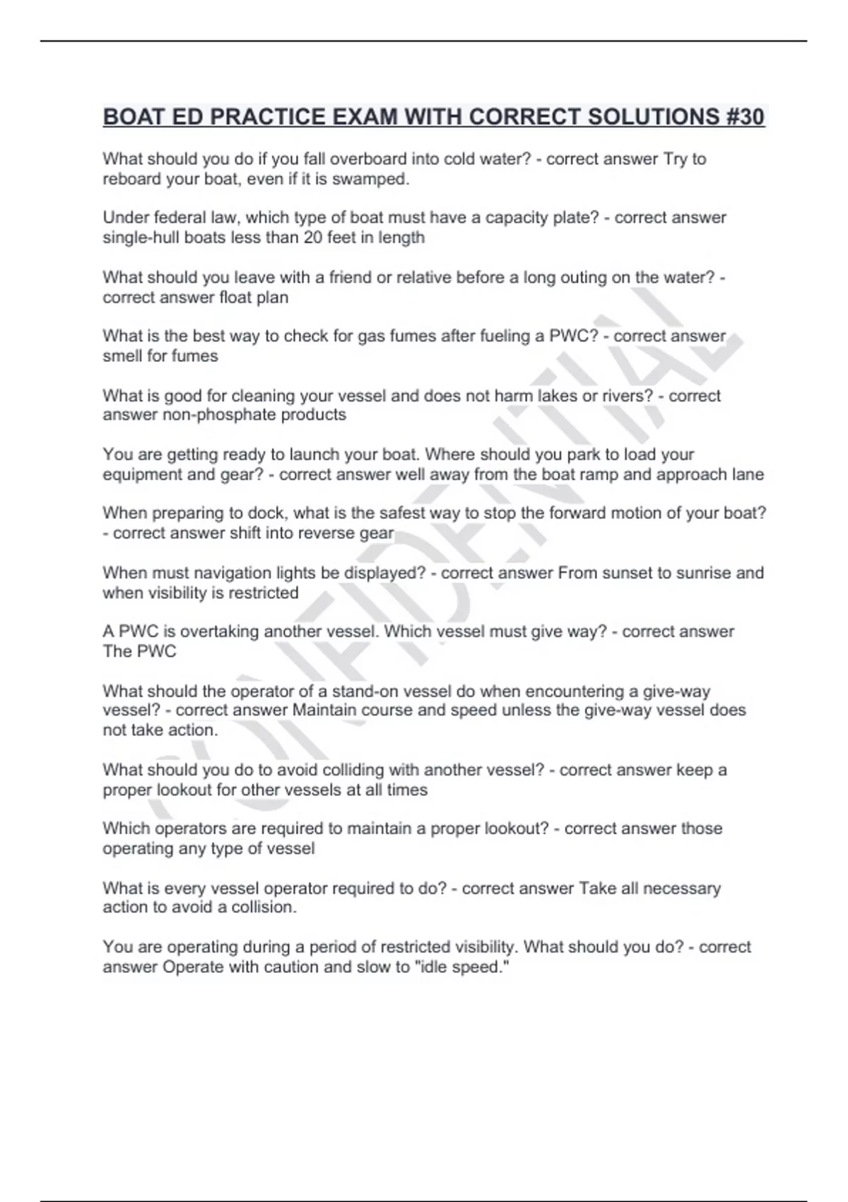 BOAT ED PRACTICE EXAM WITH CORRECT SOLUTIONS #30.