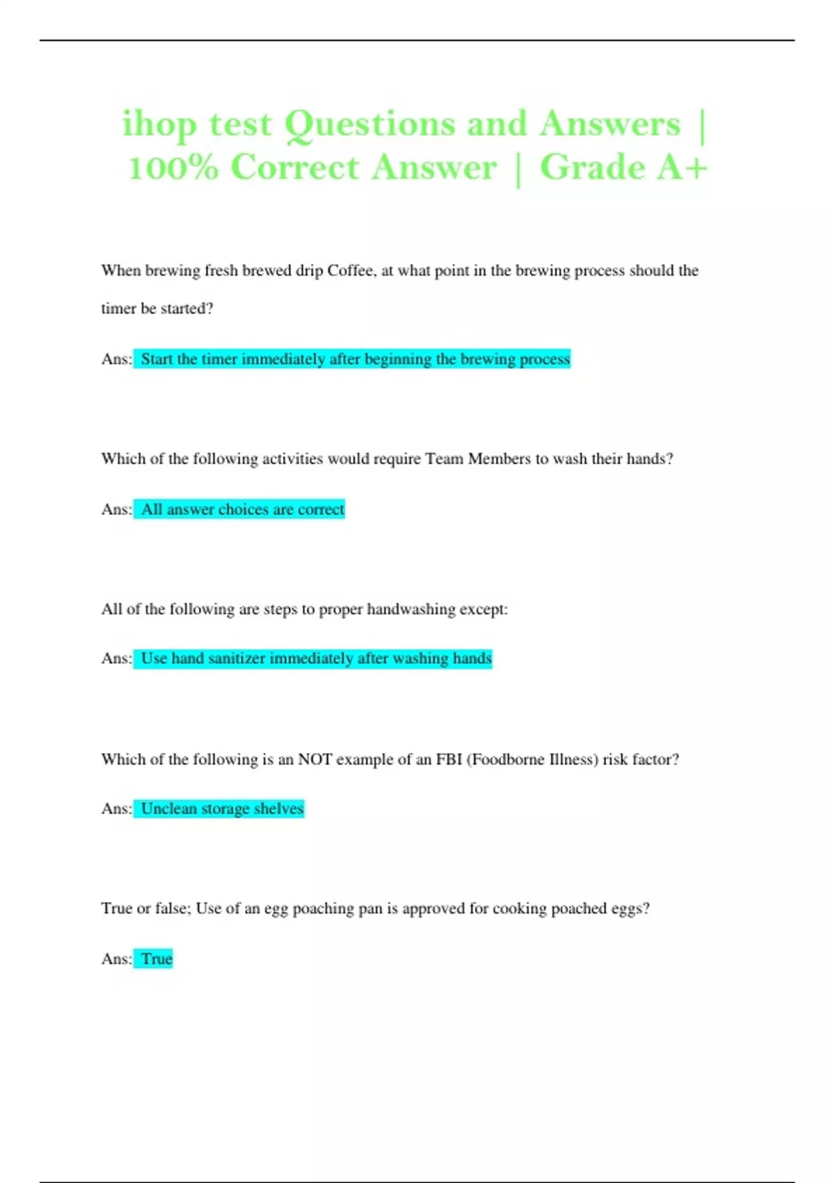 ihop test Questions and Answers | 100% Correct Answer | Grade A+