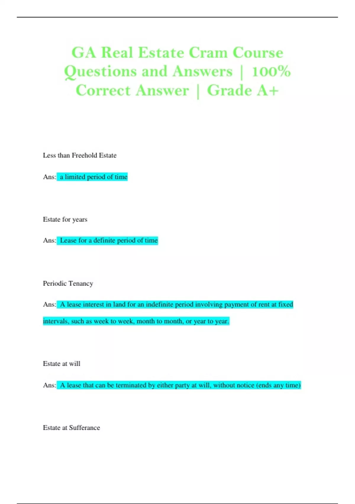 GA Real Estate Cram Course Questions and Answers | 100% Correct Answer | Grade A+
