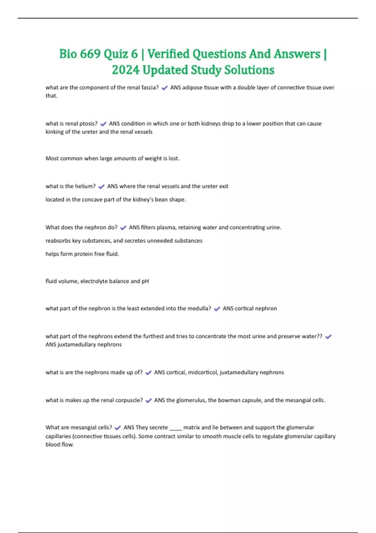 Bio 669 Quiz 6 | Verified Questions And Answers | 2024 Updated Study Solutions