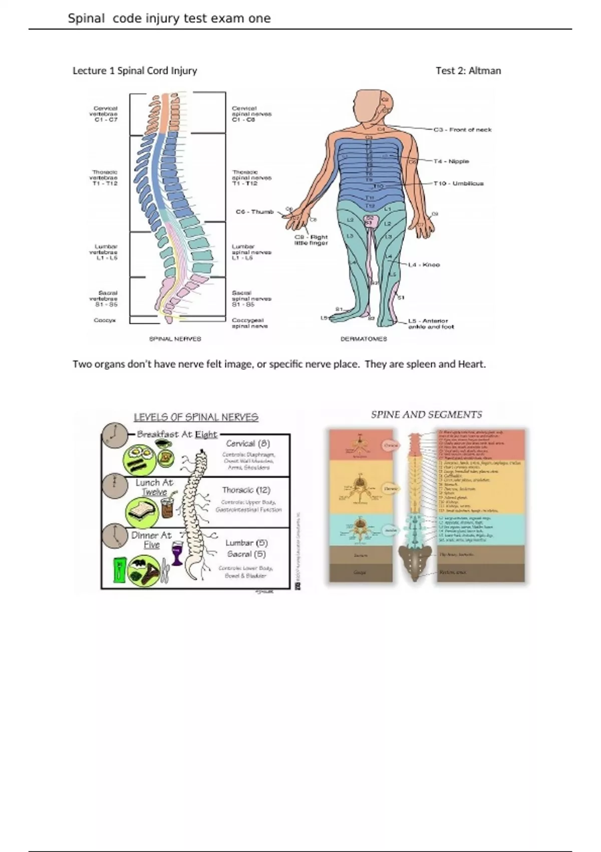 Spinal code injury test exam one with pictures