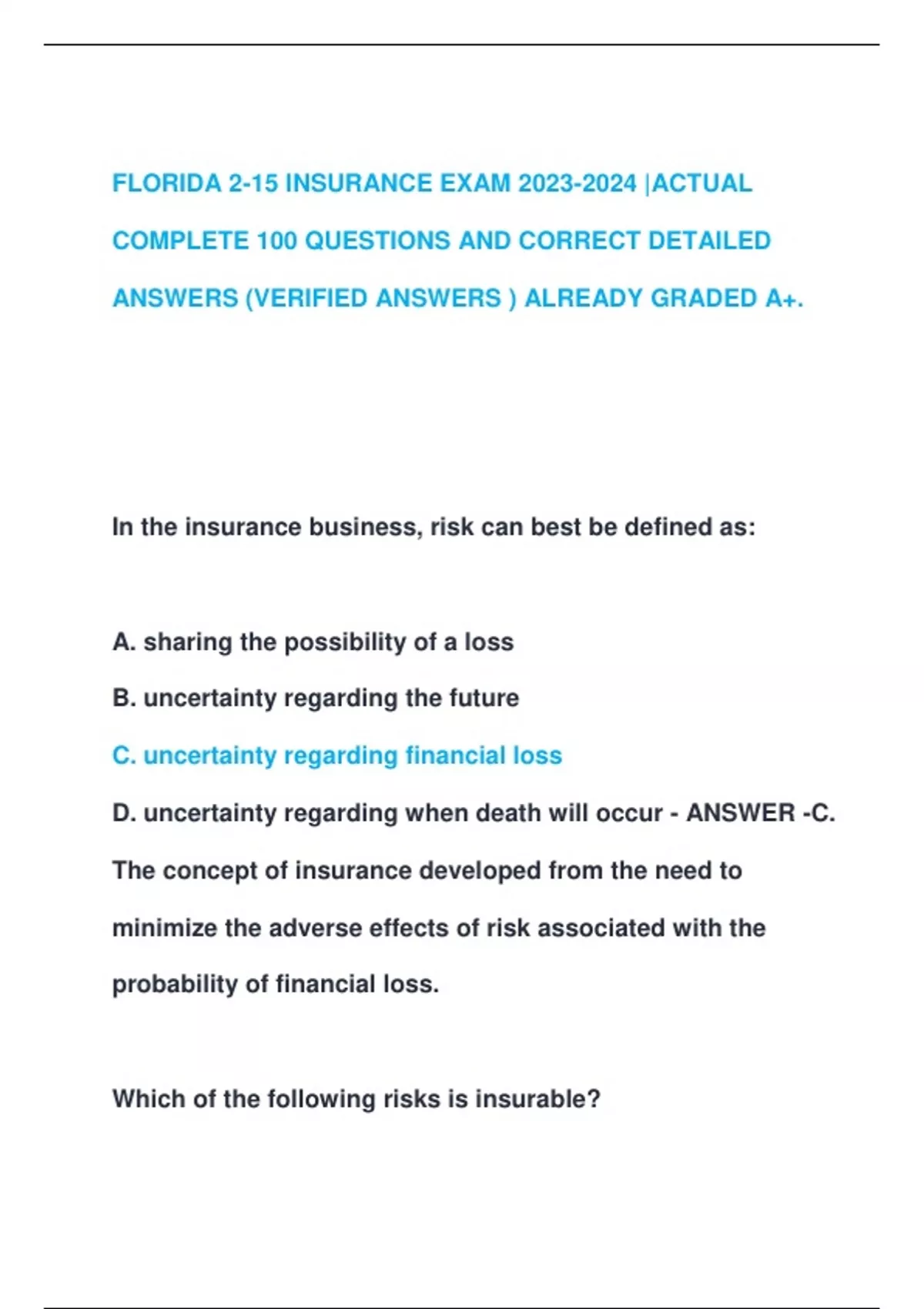FLORIDA 2-15 INSURANCE EXAM |ACTUAL COMPLETE 100 QUESTIONS AND CORRECT DETAILED ANSWERS (VERIFIED ANSWERS ) ALREADY GRADED A+. FLORIDA 2-15 INSURANCE EXAM |ACTUAL COMPLETE 100 QUESTIONS AND CORRECT DETAILED ANSWERS (VERIFIED ANSWERS ) ALREADY GRADED A+. FLORIDA 2-15 INSURANCE EXAM |ACTUAL COMPLETE 100 QUESTIONS AND CORRECT DETAILED ANSWERS (VERIFIED ANSWERS ) ALREADY GRADED A+. FLORIDA 2-15 INSURANCE EXAM |ACTUAL COMPLETE 100 QUESTIONS AND CORRECT DETAILED ANSWERS (VERIFIED ANSWERS ) ALREADY GRADED A+. FLORIDA 2-15 INSURANCE EXAM |ACTUAL COMPLETE 100 QUESTIONS AND CORRECT DETAILED ANSWERS (VERIFIED ANSWERS ) ALREADY GRADED A+. FLORIDA 2-15 INSURANCE EXAM |ACTUAL COMPLETE 100 QUESTIONS AND CORRECT DETAILED ANSWERS (VERIFIED ANSWERS ) ALREADY GRADED A+. FLORIDA 2-15 INSURANCE EXAM |ACTUAL COMPLETE 100 QUESTIONS AND CORRECT DETAILED ANSWERS (VERIFIED ANSWERS ) ALREADY GRADED A+. FLORIDA 2-15 INSURANCE EXAM |ACTUAL COMPLETE 100 QUESTIONS AND CORRECT DETAILED ANSWERS (VERIFIED ANSWERS ) ALREADY GRADED A+. FLORIDA 2-15 INSURANCE EXAM |ACTUAL COMPLETE 100 QUESTIONS AND CORRECT DETAILED ANSWERS (VERIFIED ANSWERS ) ALREADY GRADED A+. FLORIDA 2-15 INSURANCE EXAM |ACTUAL COMPLETE 100 QUESTIONS AND CORRECT DETAILED ANSWERS (VERIFIED ANSWERS ) ALREADY GRADED A+. FLORIDA 2-15 INSURANCE EXAM |ACTUAL COMPLETE 100 QUESTIONS AND CORRECT DETAILED ANSWERS (VERIFIED ANSWERS ) ALREADY GRADED A+.