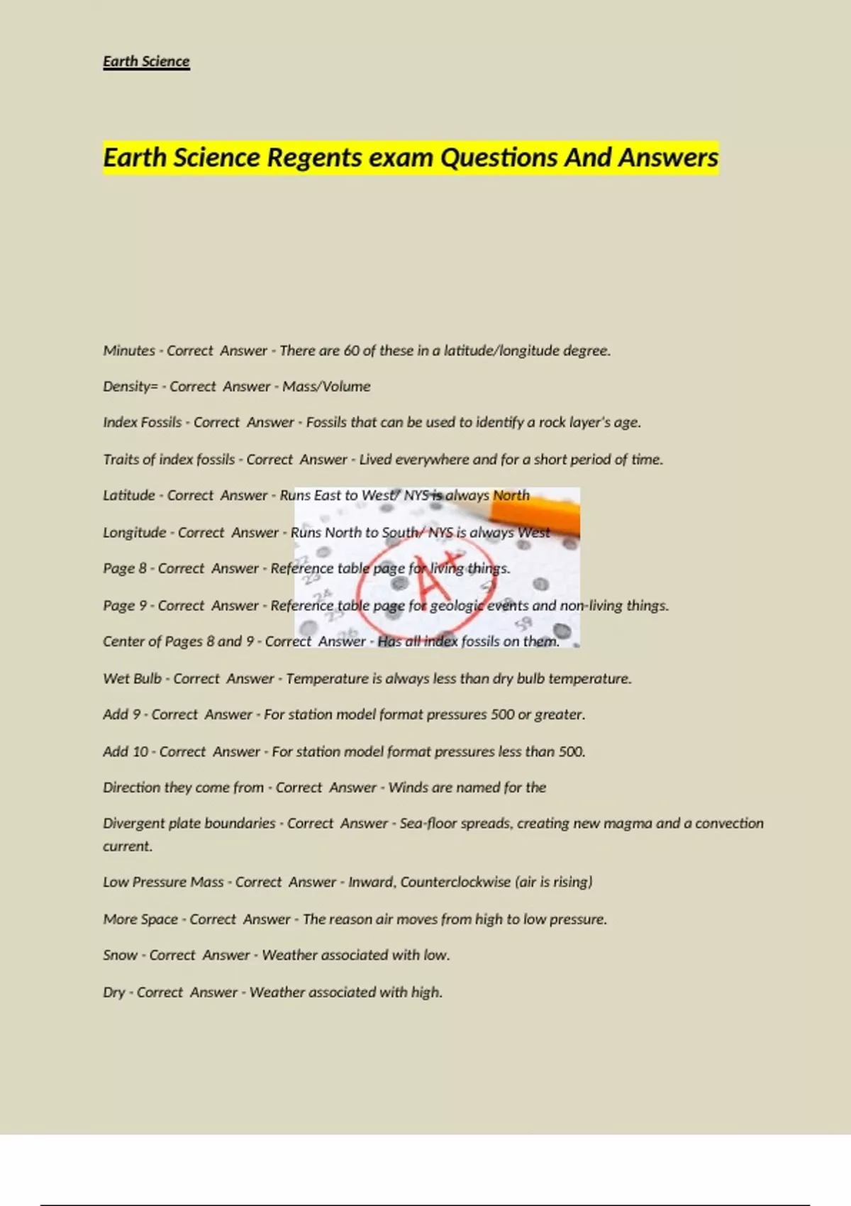 Earth Science Regents exam Questions And Answers.