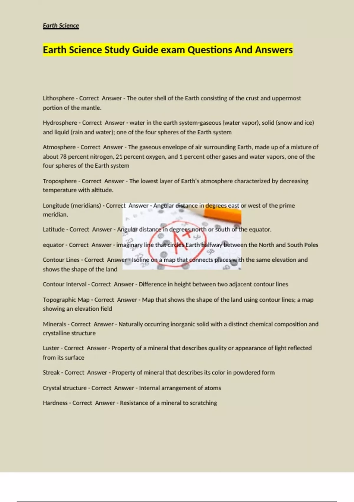 Earth Science Study Guide exam Questions And Answers