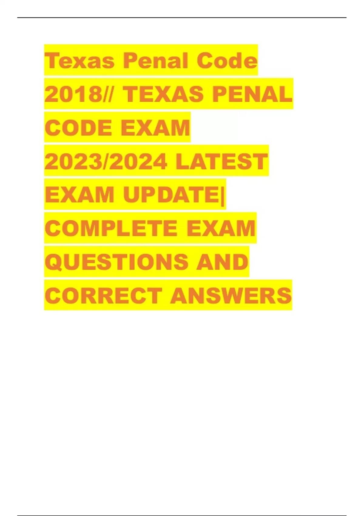 Texas Penal Code 2018// TEXAS PENAL CODE EXAM 2023/2024 LATEST EXAM UPDATE| COMPLETE EXAM QUESTIONS AND CORRECT ANSWERS