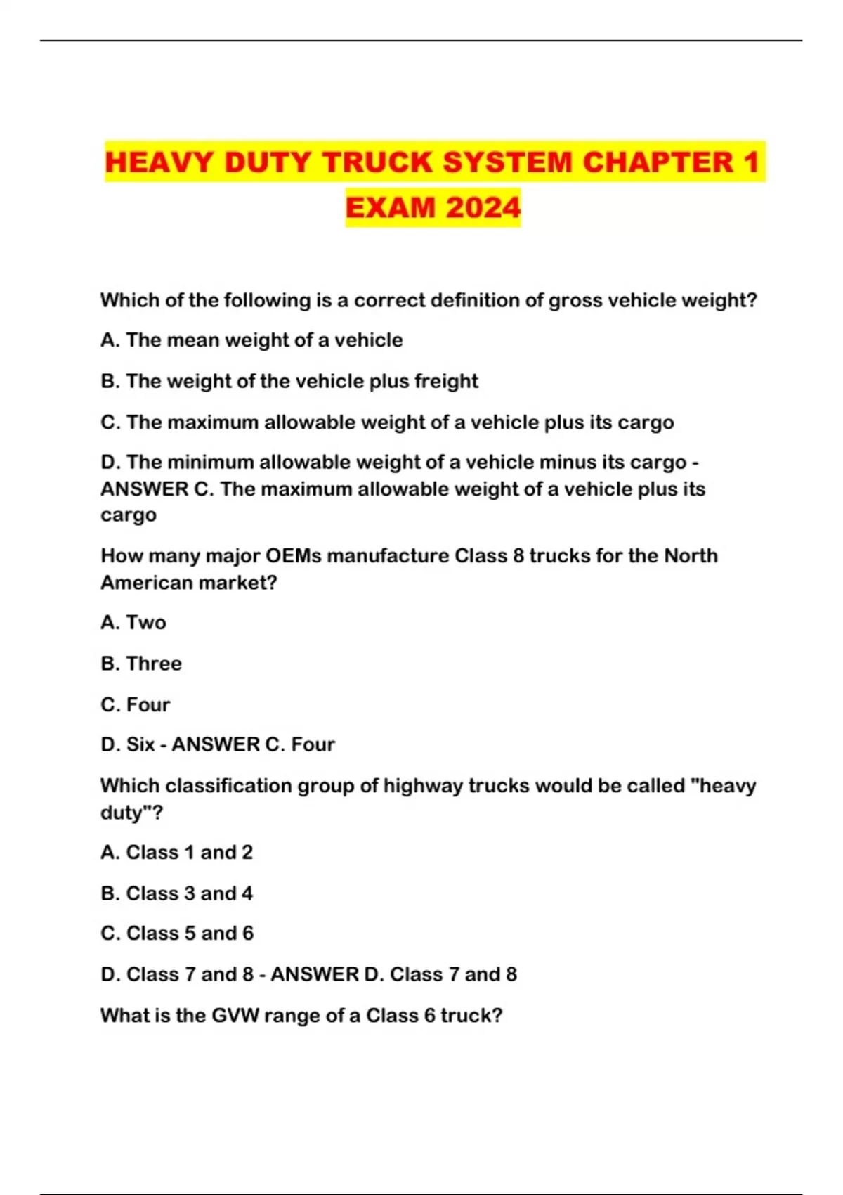 HEAVY DUTY TRUCK SYSTEM CHAPTER 1 EXAM 2024...