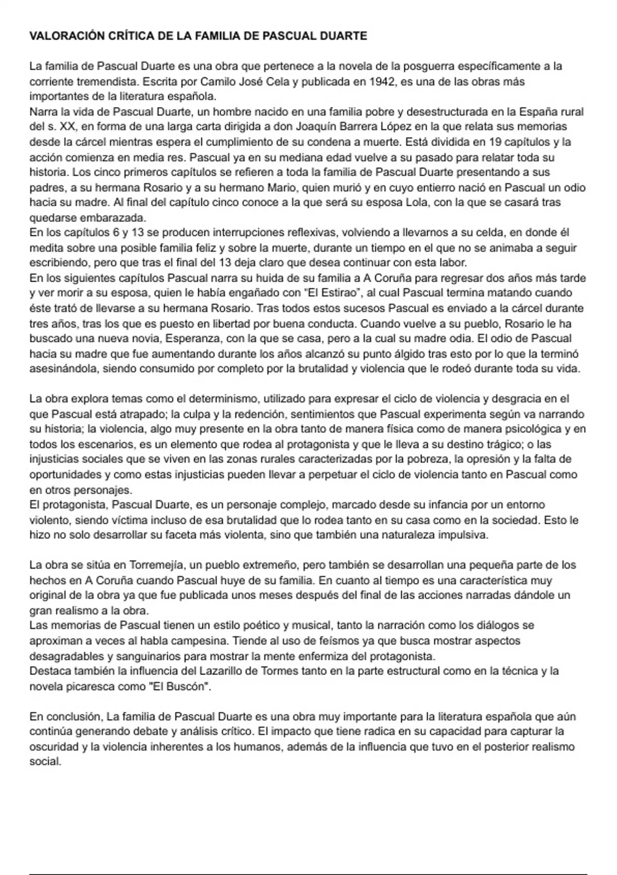 En conclusión, La familia de Pascual Duarte es una obra muy importante para la literatura española que aún