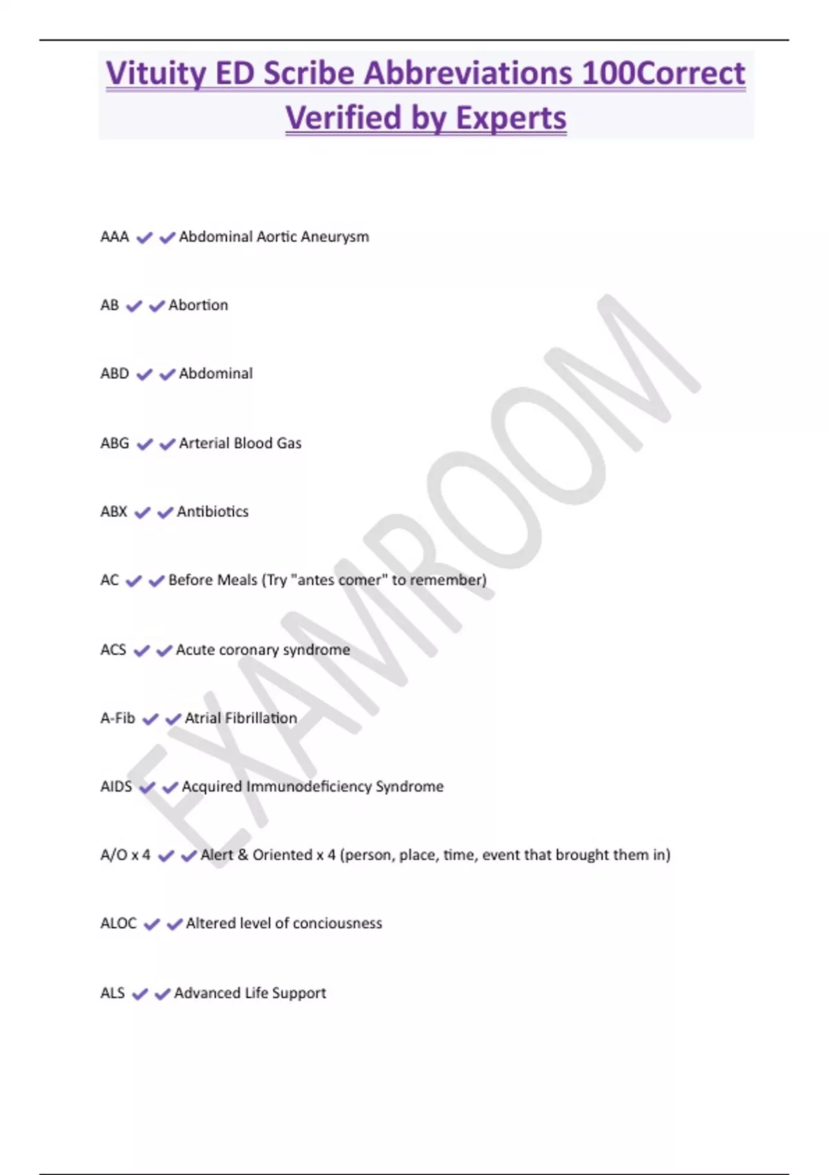 Vituity ED Scribe Abbreviations 100% Correct Verified by Experts