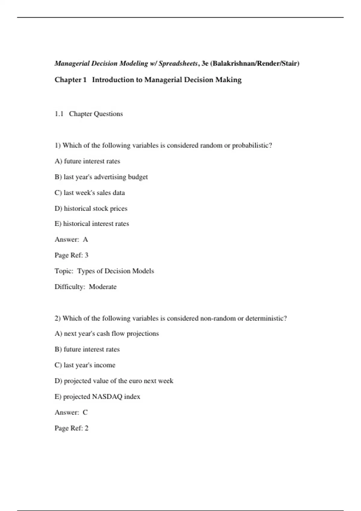 Are you worried about your exam preparation for your course? Are you uncertain whether or not you are ready to enter the exam? if yes, look no further. The question bank, to be used in conjunction with Managerial Decision Modeling with Spreadsheets,,Balakrishnan,3e allows you to practice and get ready for exams by giving access to tremendous amount of test questions written exclusively by textbook authors. These questions go in line with the textbook and cover the entire chapters. Satisfaction guaranteed. 100% Downloadable. Instant Access. Buy now.