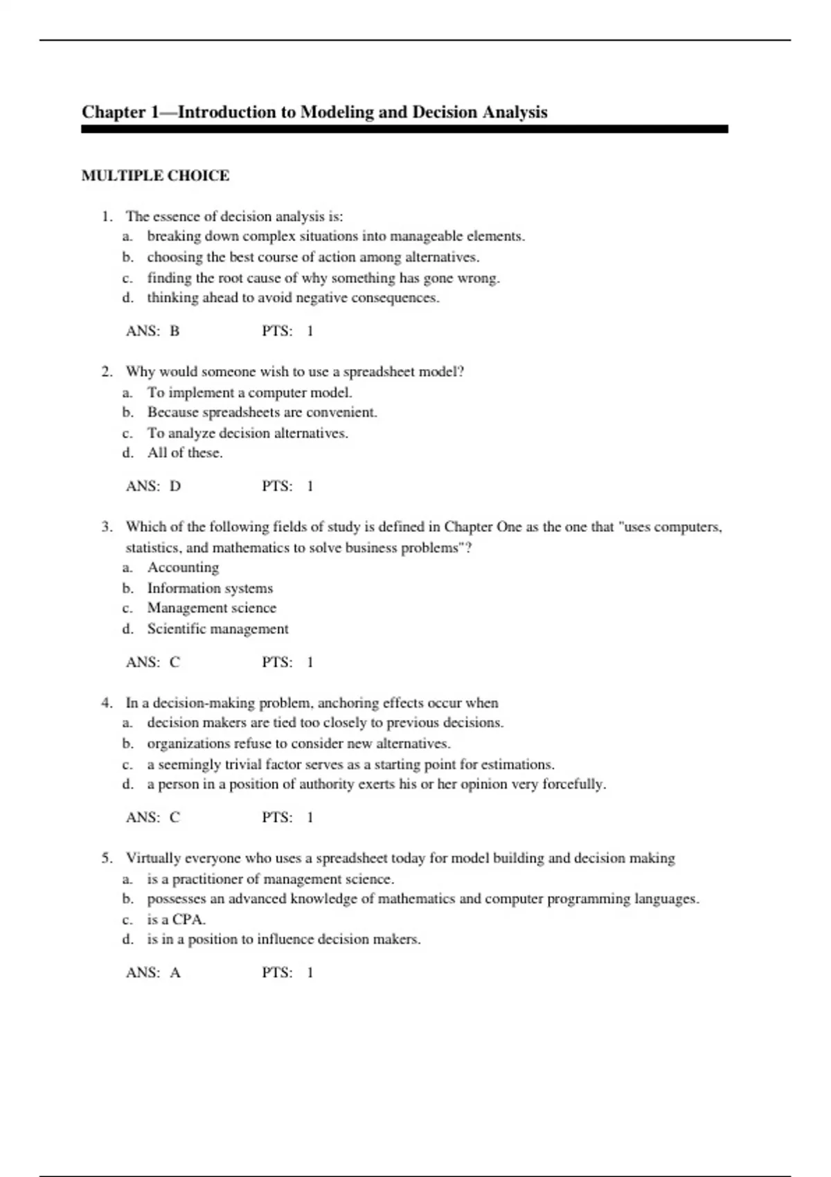 Are you worried about your exam preparation for your course? Are you uncertain whether or not you are ready to enter the exam? if yes, look no further. The question bank, to be used in conjunction with Managerial Decision Modeling, International Edition,Ragsdale,6e allows you to practice and get ready for exams by giving access to tremendous amount of test questions written exclusively by textbook authors. These questions go in line with the textbook and cover the entire chapters. Satisfaction guaranteed. 100% Downloadable. Instant Access. Buy now.
