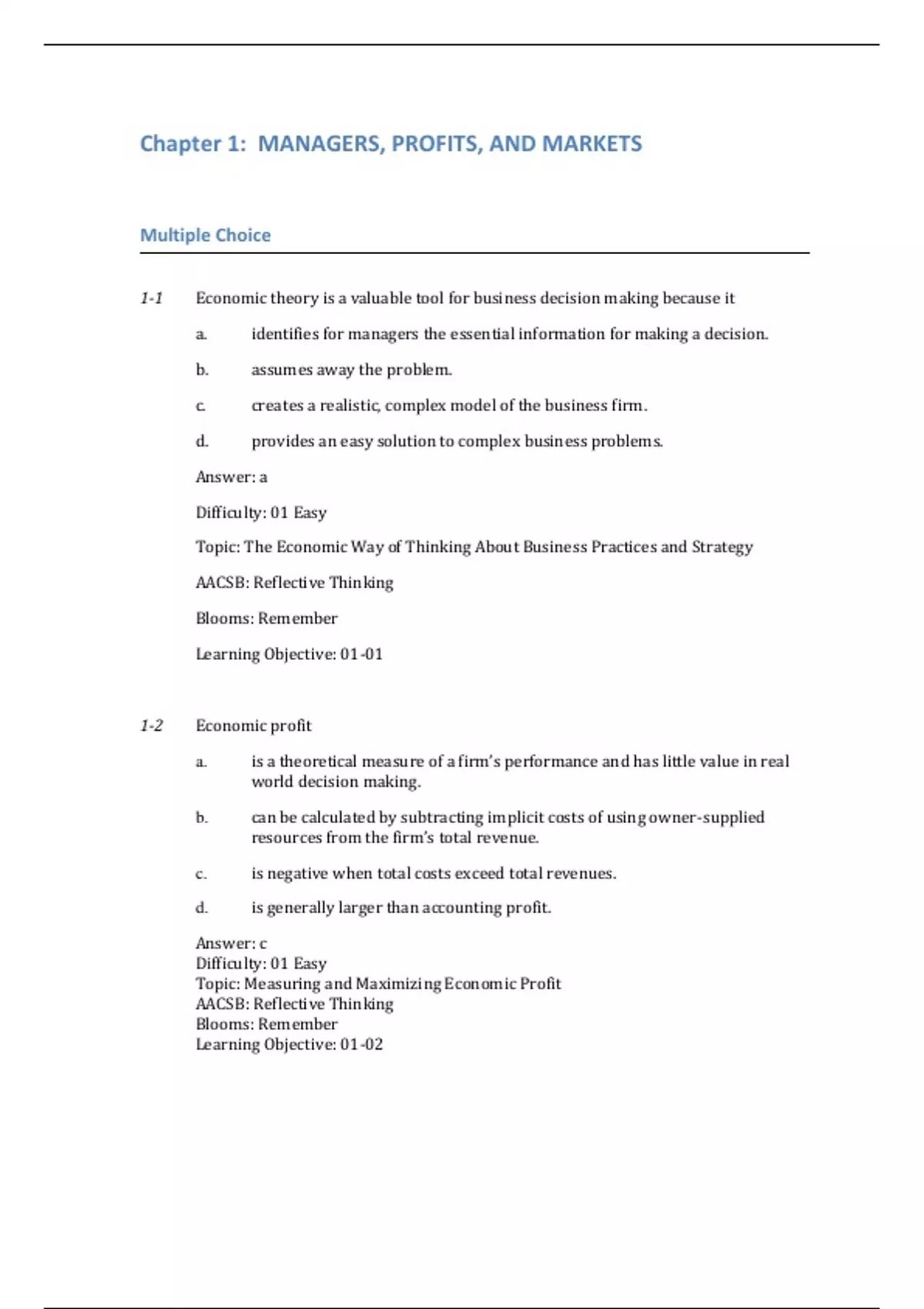 Chapter 1: MANAGERS, PROFITS, AND MARKETS
