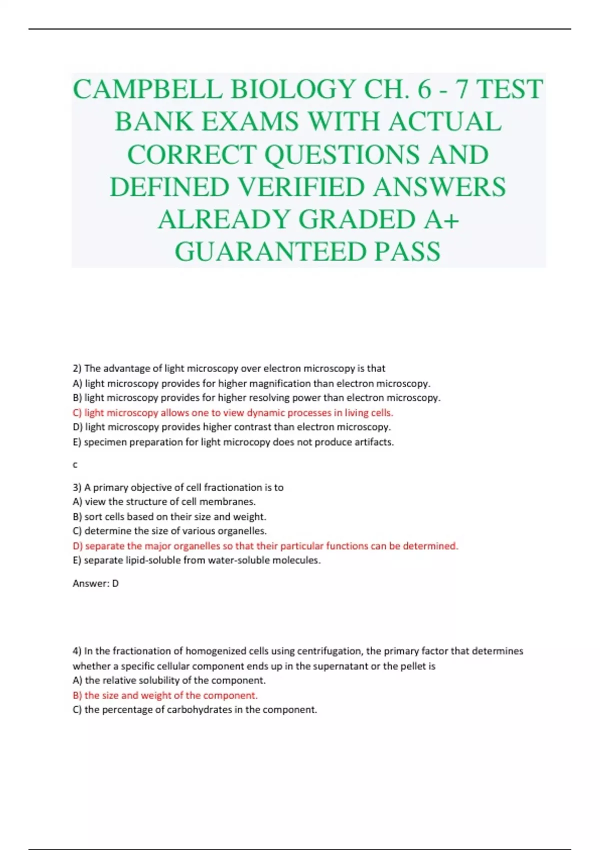 CAMPBELL BIOLOGY CH. 6 - 7 TEST BANK EXAMS WITH ACTUAL CORRECT QUESTIONS AND DEFINED VERIFIED ANSWERS ALREADY GRADED A+ GUARANTEED PASS