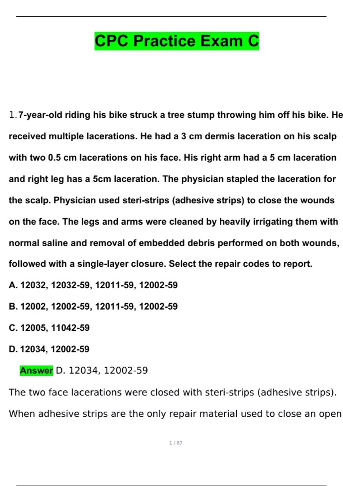 CPC Practice Exam C Questions with 100% Correct Answers | Verified | Latest Update