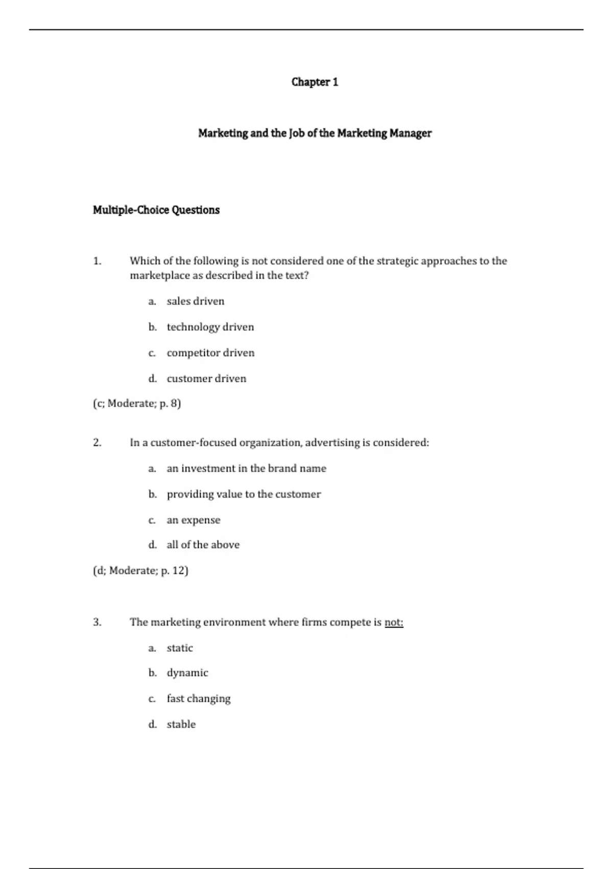 Question Bank in line with Marketing Management, 3E,winer