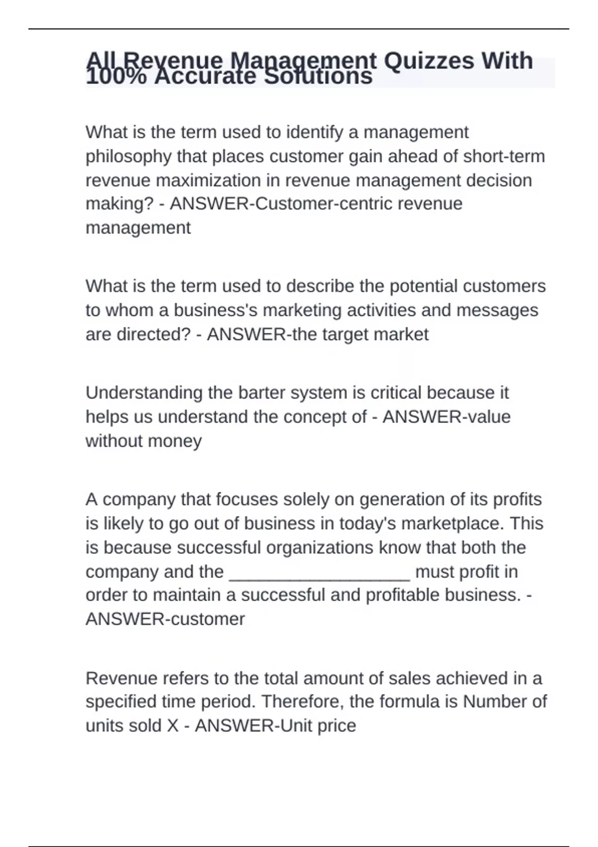 All Revenue Management Quizzes With 100% Accurate Solutions