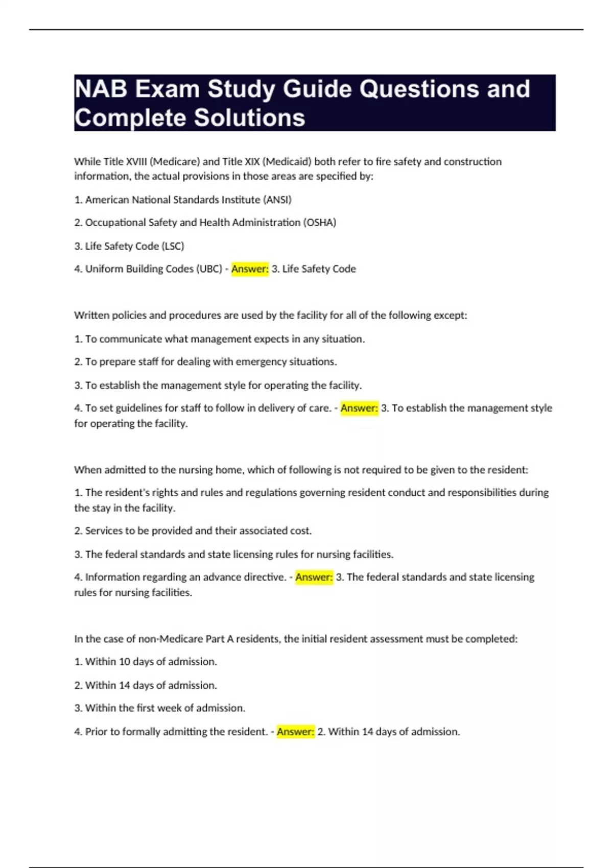 NAB Exam Study Guide Questions and Complete Solutions