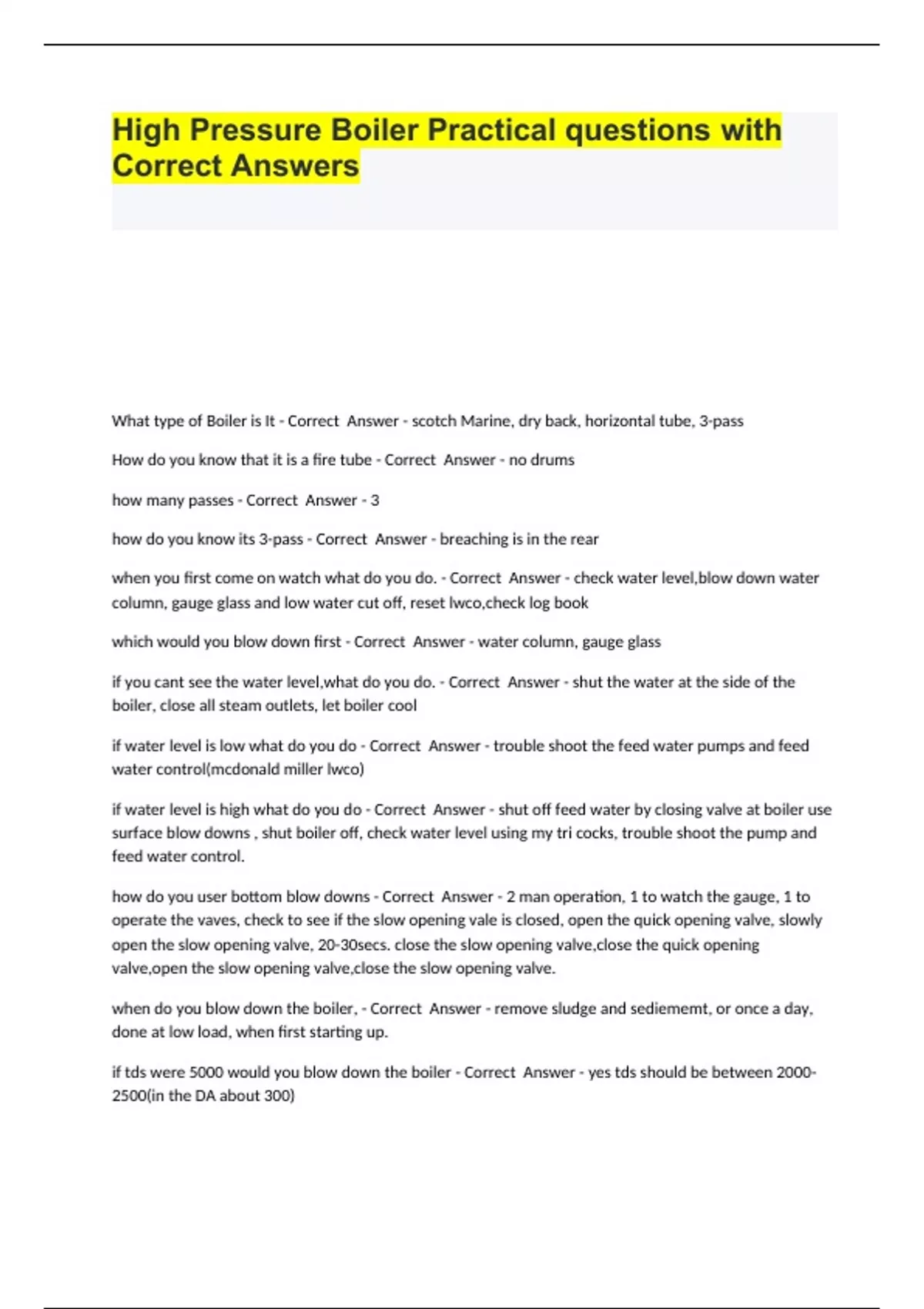 What type of Boiler is It - Correct Answer - scotch Marine, dry back, horizontal tube, 3-pass