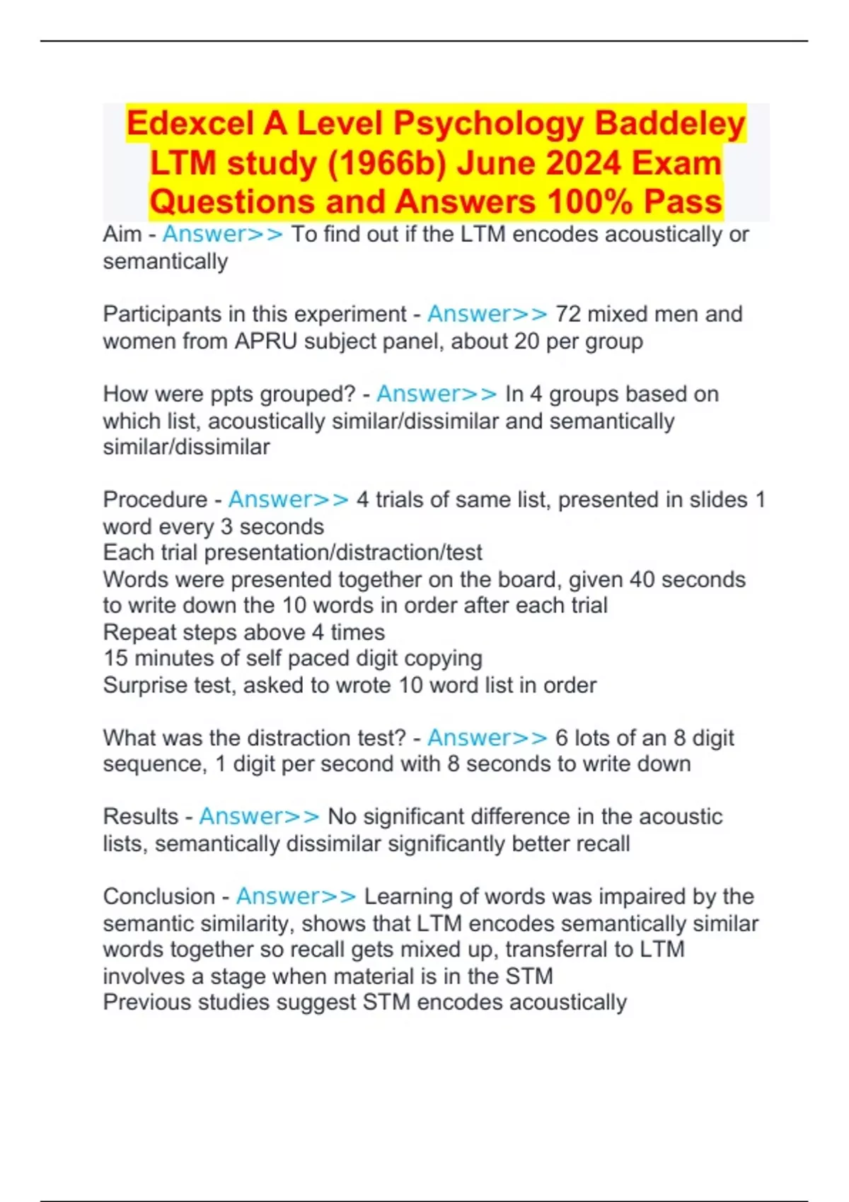 Aim - Answer>> To find out if the LTM encodes acoustically or