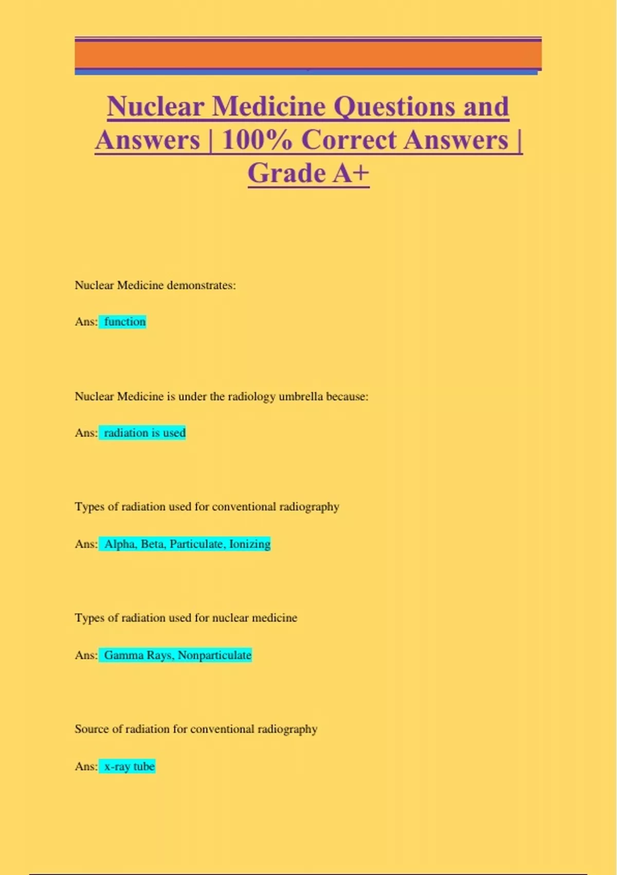 Nuclear Medicine Questions and Answers | 100% Correct Answers | Grade A+