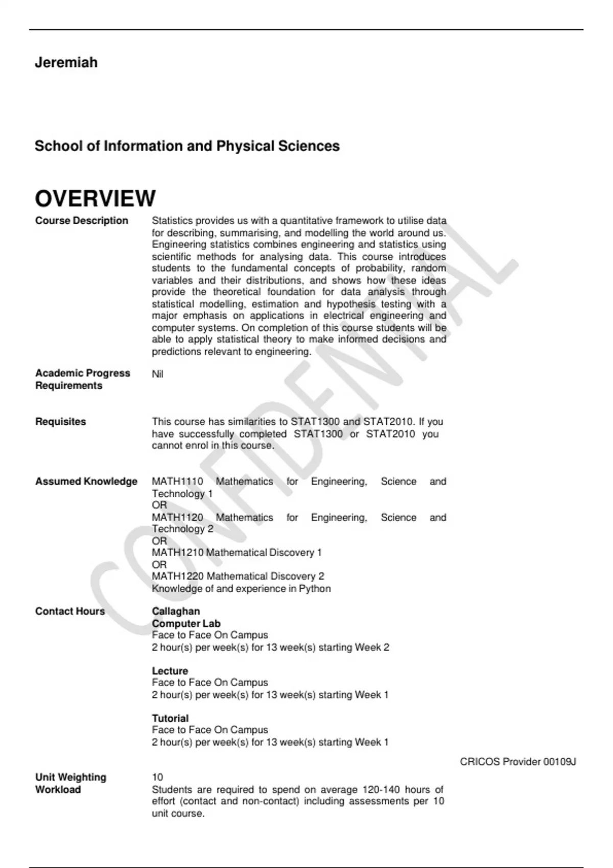 Requisites This course has similarities to STAT1300 and STAT2010. If you