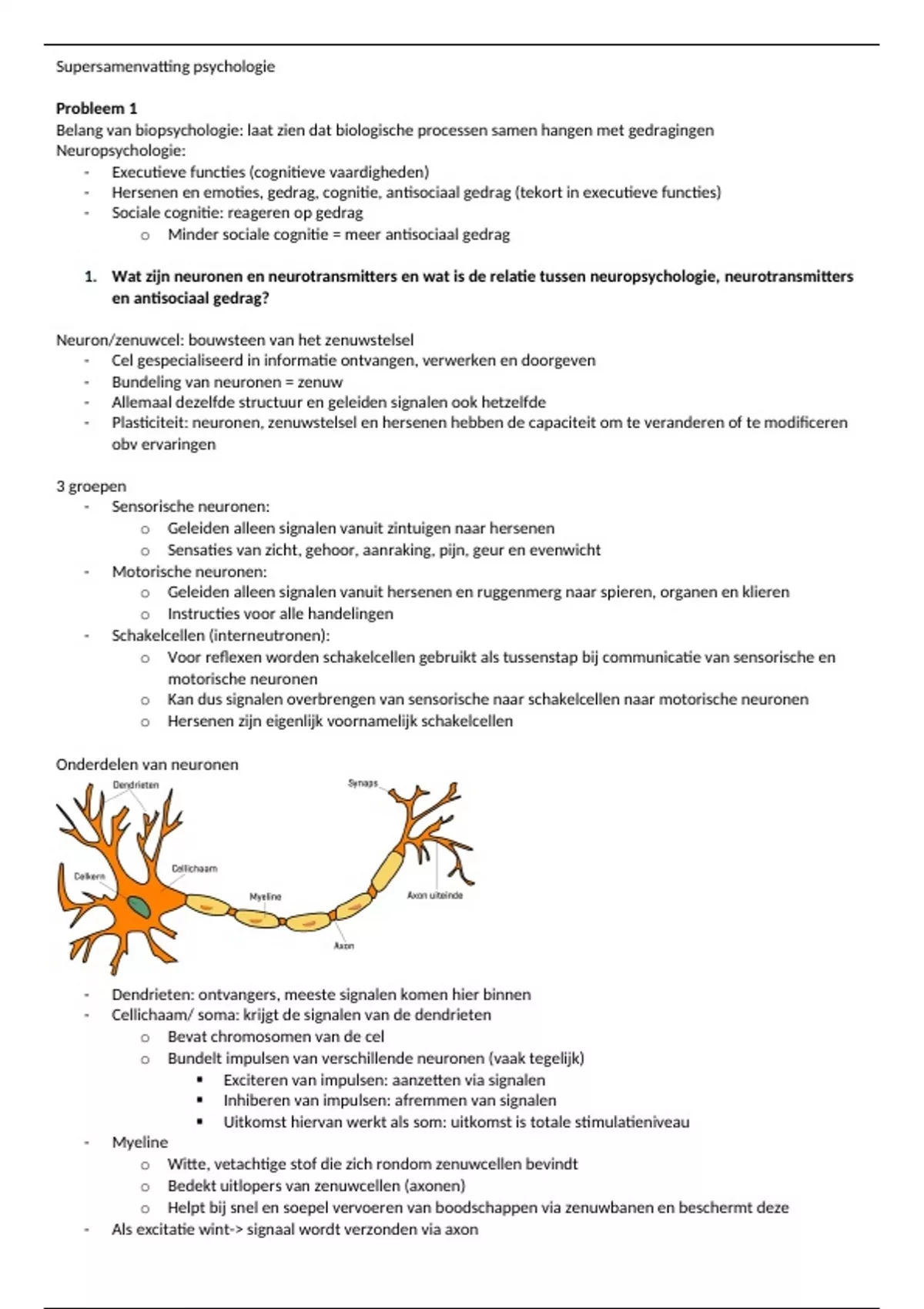 1. Wat zijn neuronen en neurotransmitters en wat is de relatie tussen neuropsychologie, neurotransmitters