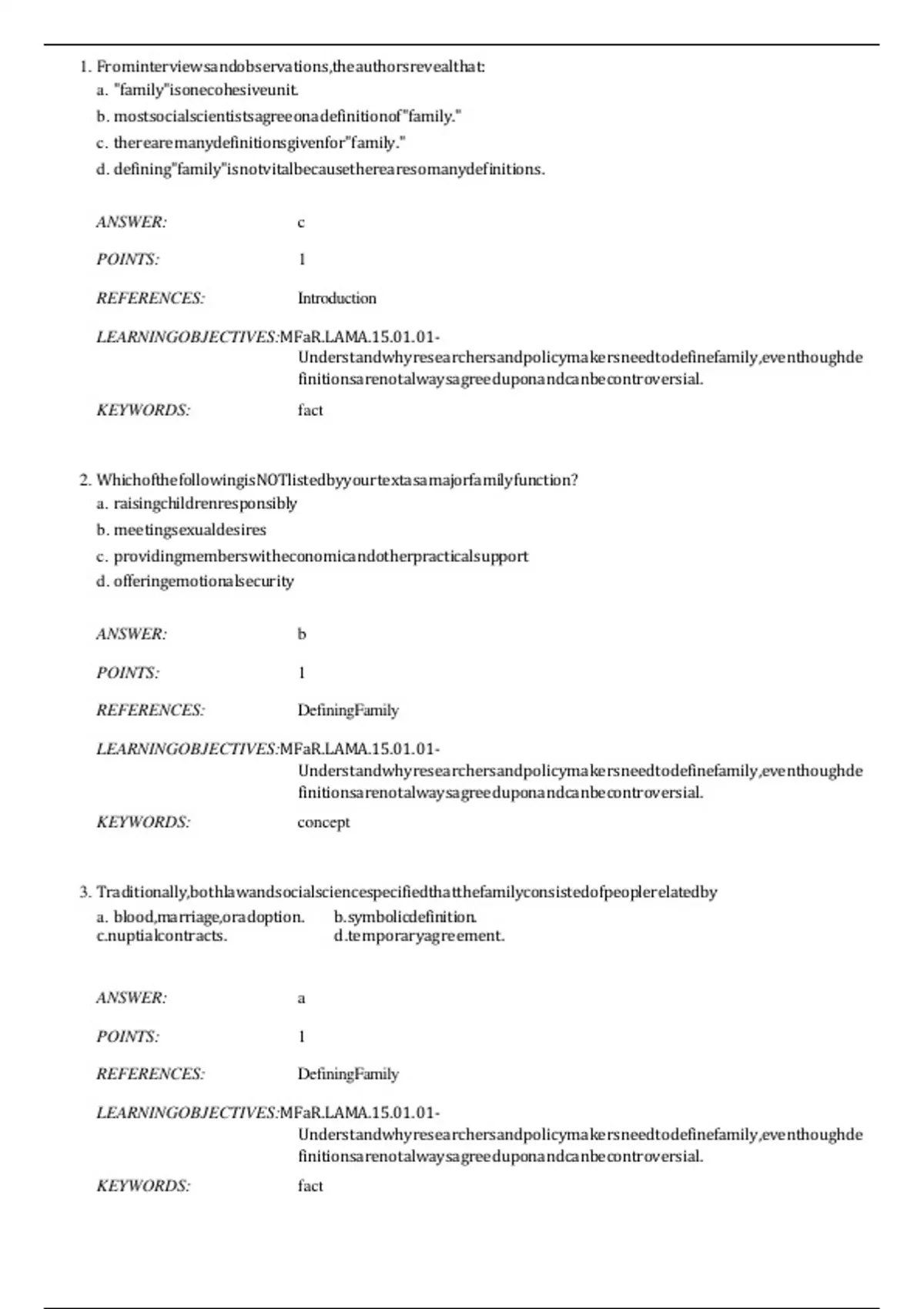 Question Bank in line with Marriages, Families, and Relationships Making Choices in a Diverse Society,Ann Lamanna,6e