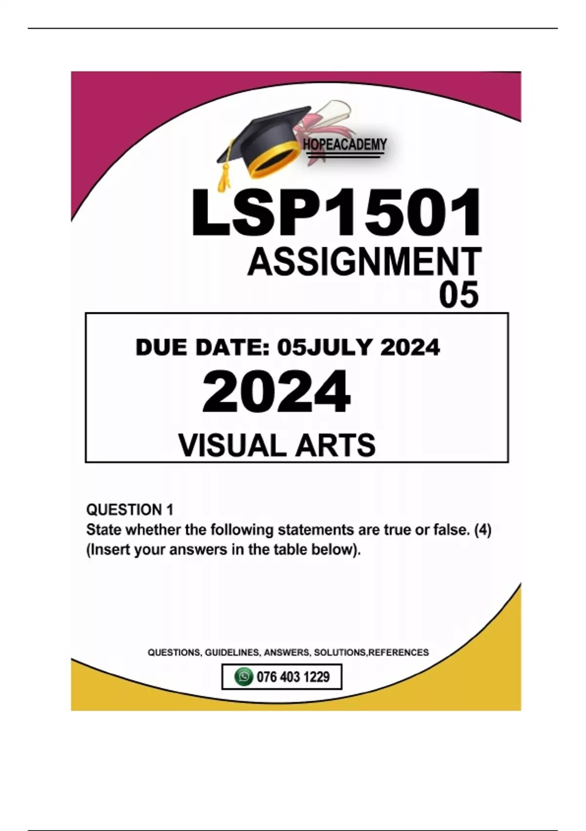 LSP1501 ASSIGNMENT 05..DUE DATE:05 JULY 2024