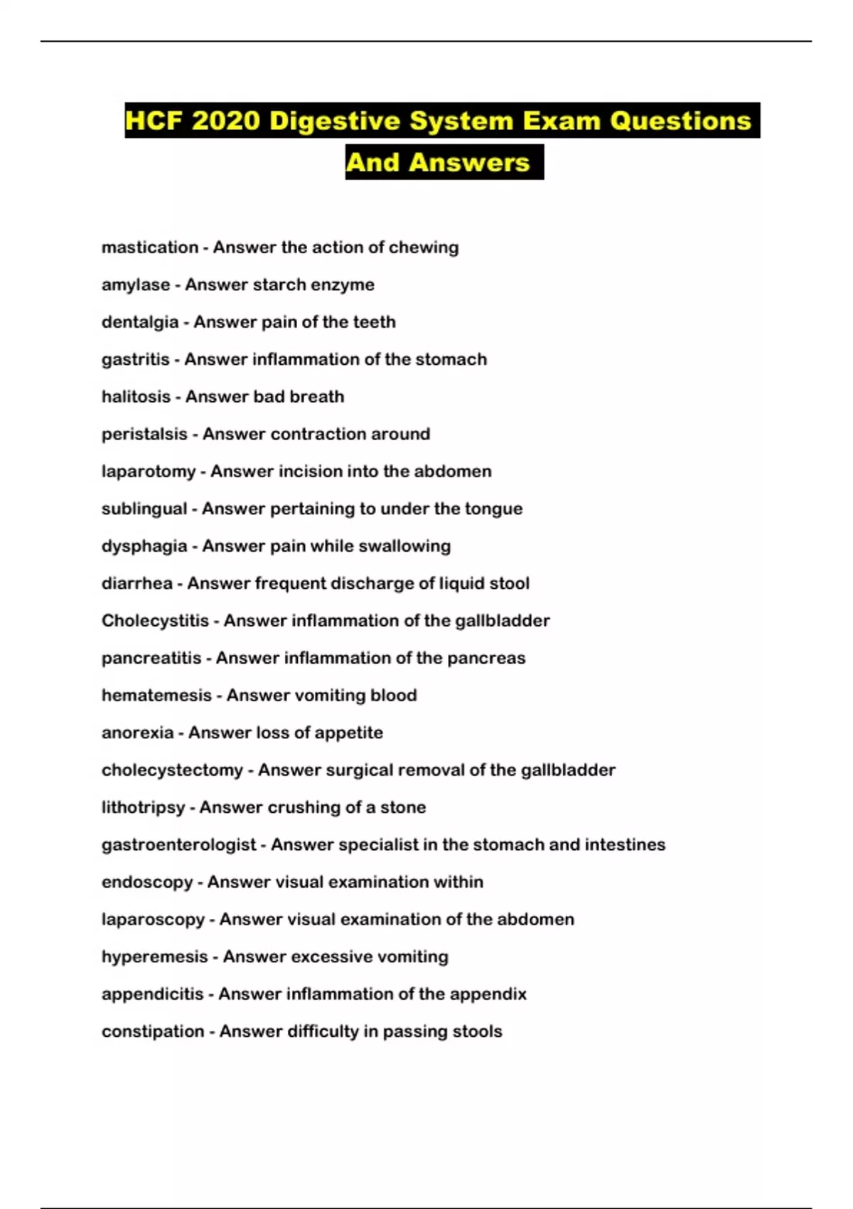 HCF 2020 Digestive System Exam Questions And Answers ...