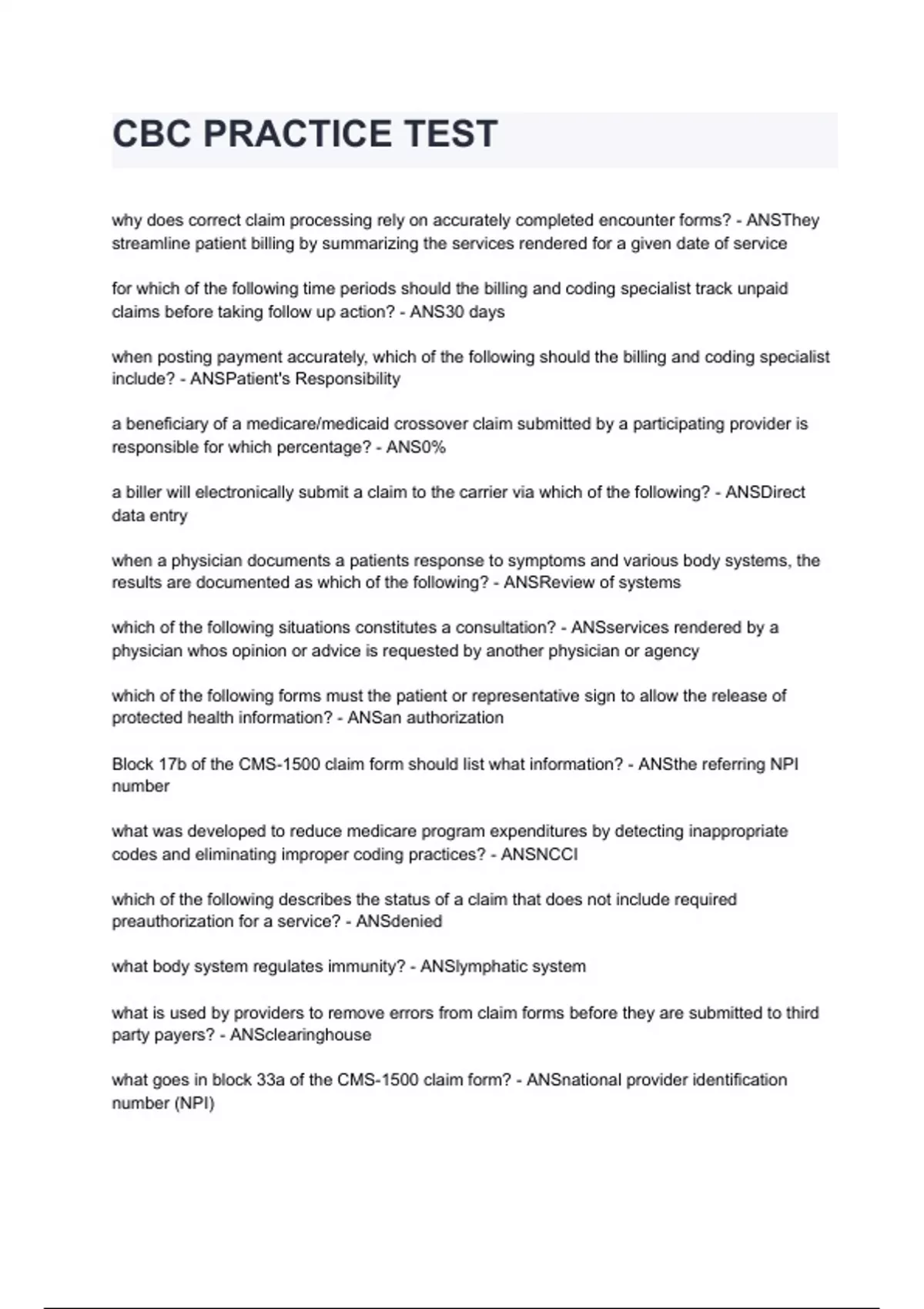 CBC PRACTICE TEST questions and answers 100% verified solutions -tutor verified 2024/2025
