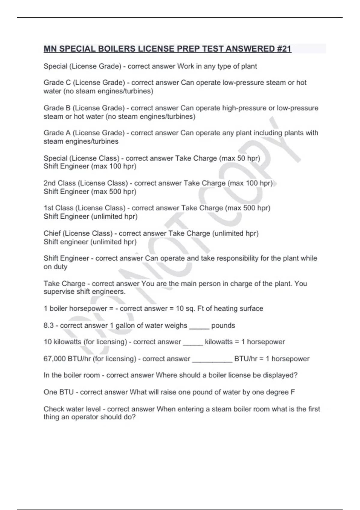 Grade C (License Grade) - correct answer Can operate low-pressure steam or hot