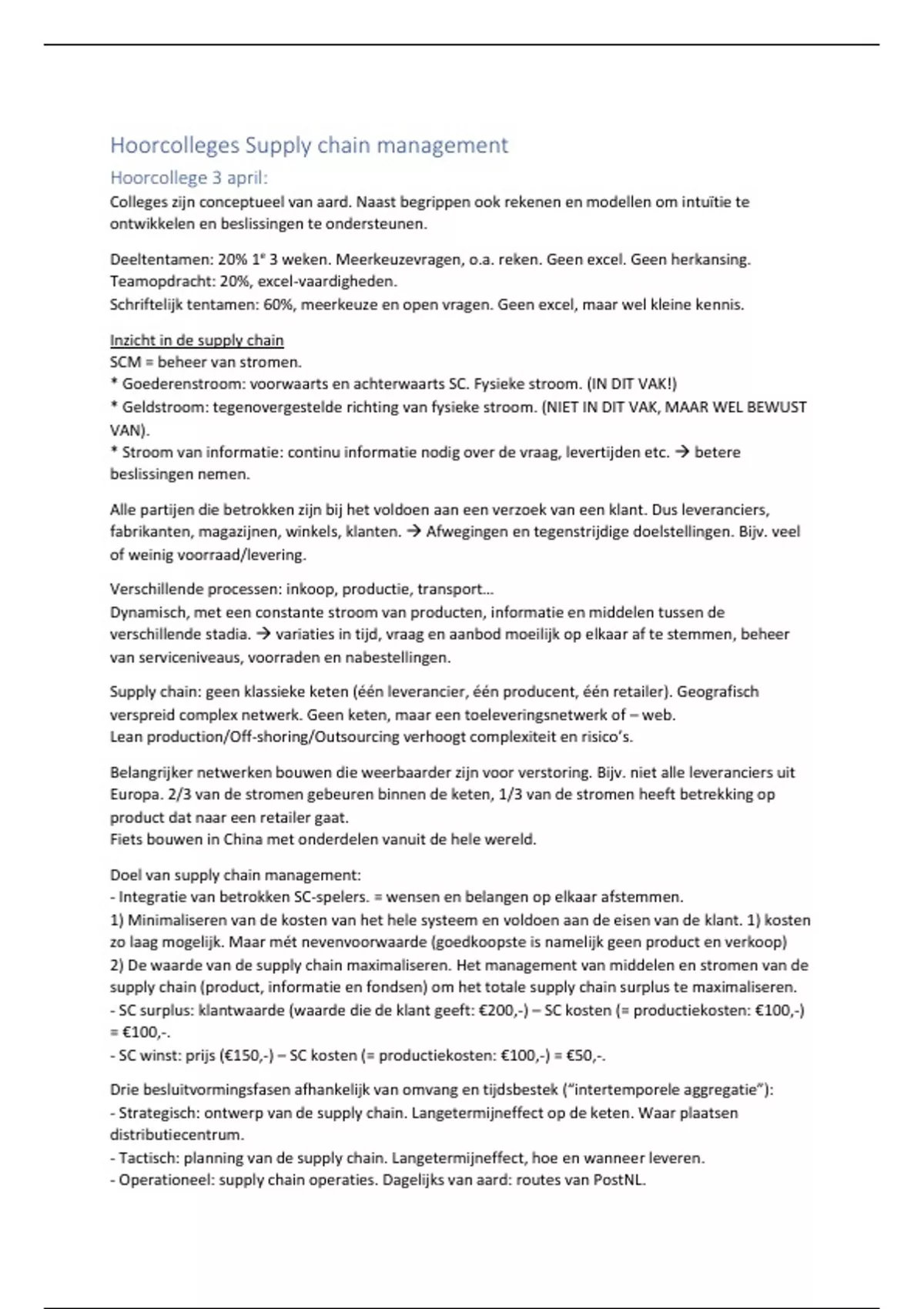 supply chain (product, informatie en fondsen) om het totale supply chain surplus te maximaliseren.