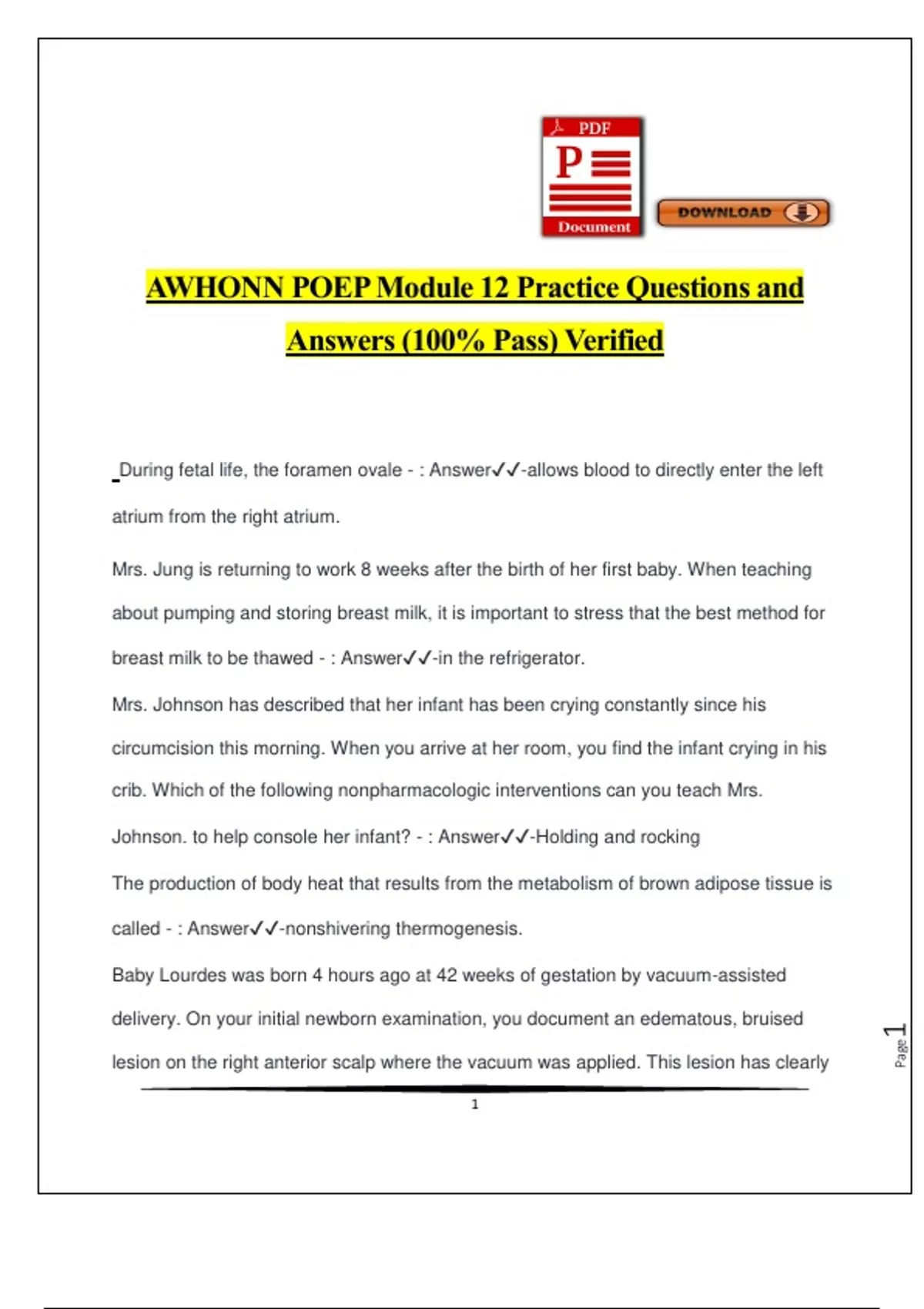 AWHONN POEP Module 12 Practice Questions and Answers (100% Pass) Verified