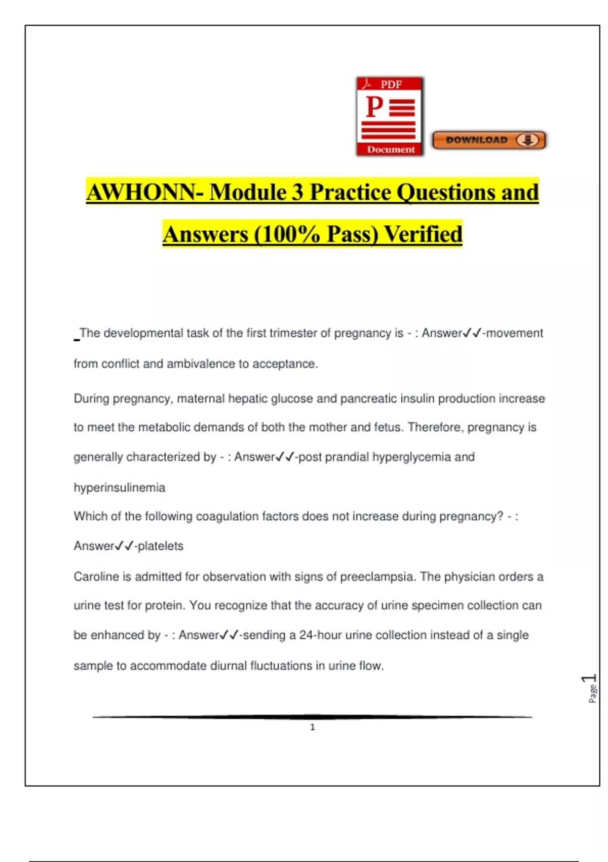 AWHONN- Module 3 Practice Questions and Answers (100% Pass) Verified