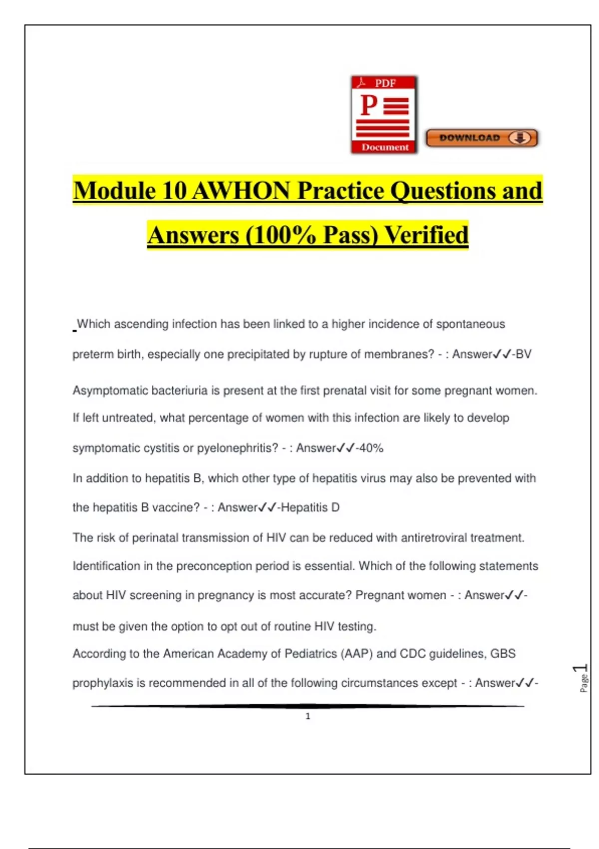 Module 10 AWHON Practice Questions and Answers (100% Pass) Verified