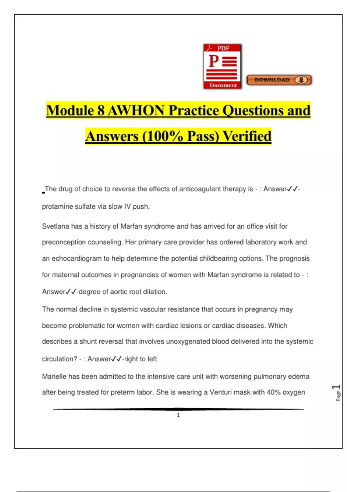 Module 8 AWHON Practice Questions and Answers (100% Pass) Verified